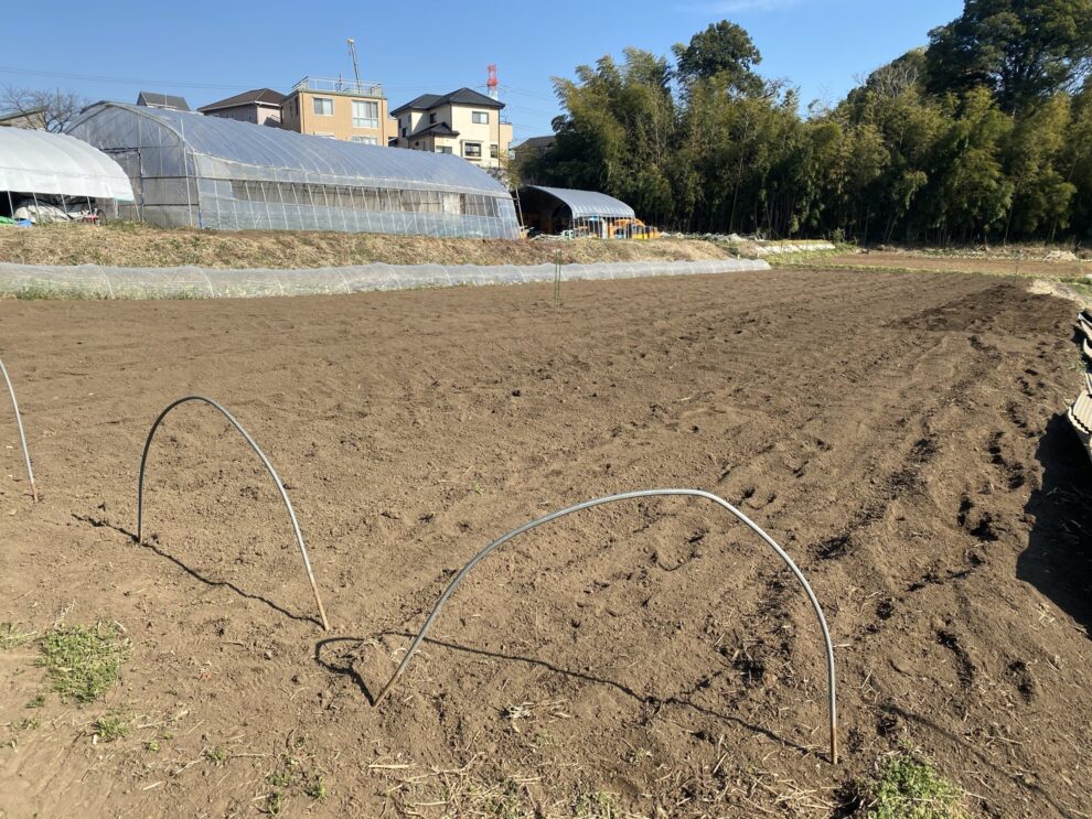 2021年2月25日(木)の作業記録 (小溝玉ねぎ畑で玉ねぎの追肥作業が終了、小溝玉ねぎ畑の岩槻ネギに追肥土寄せ作業、鈴木さん畑で玉ねぎの追肥作業、斉藤さん畑の下の畑を全体的にトラクターで耕耘、メークイン定植作業)