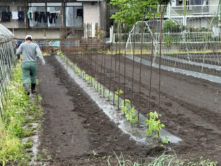 2024年5月1日(水)の作業記録 (雨の為午前中のみの作業、ミニトマトの定植作業、菊芋の植え付け作業が終わりました)