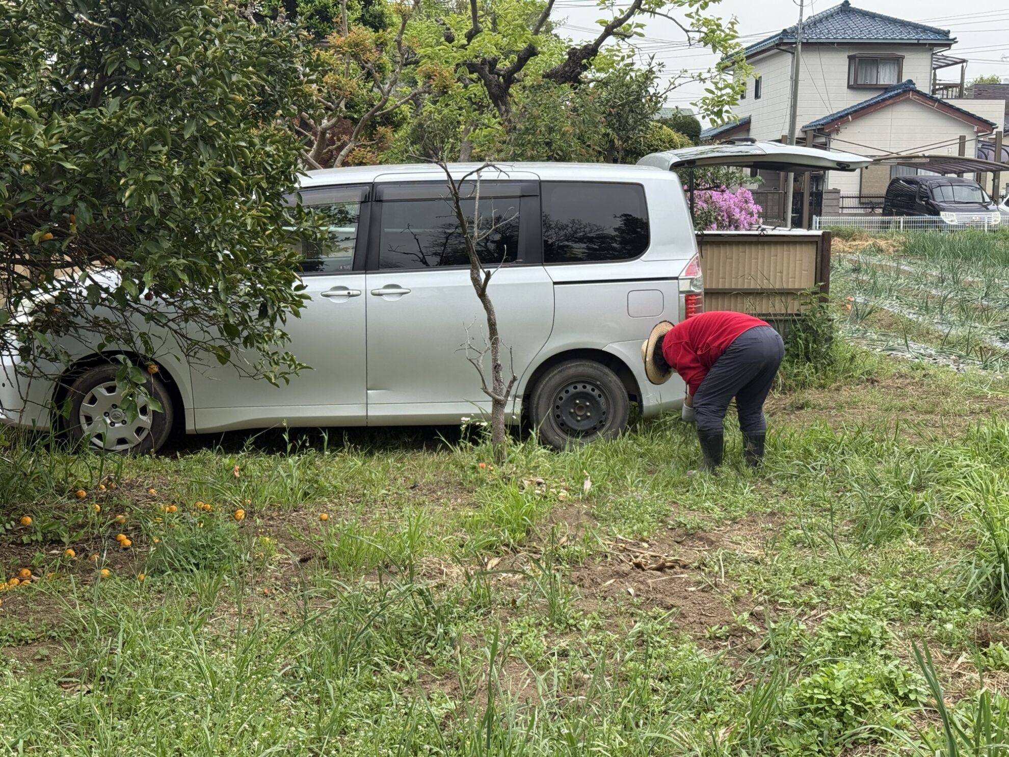 吉岡さん畑の岩槻ネギ周りの除草作業。