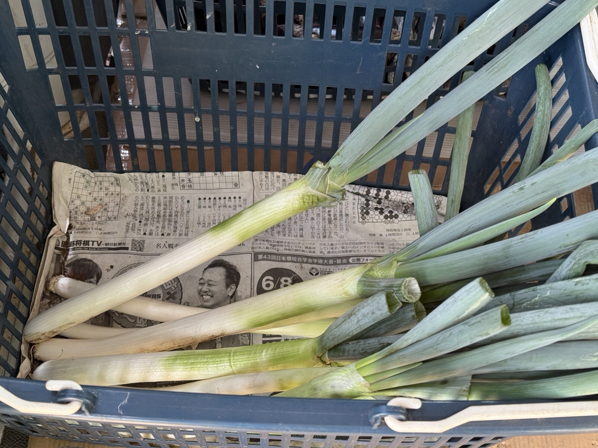 田中さんの下の畑で、長ネギの土寄せ作業。