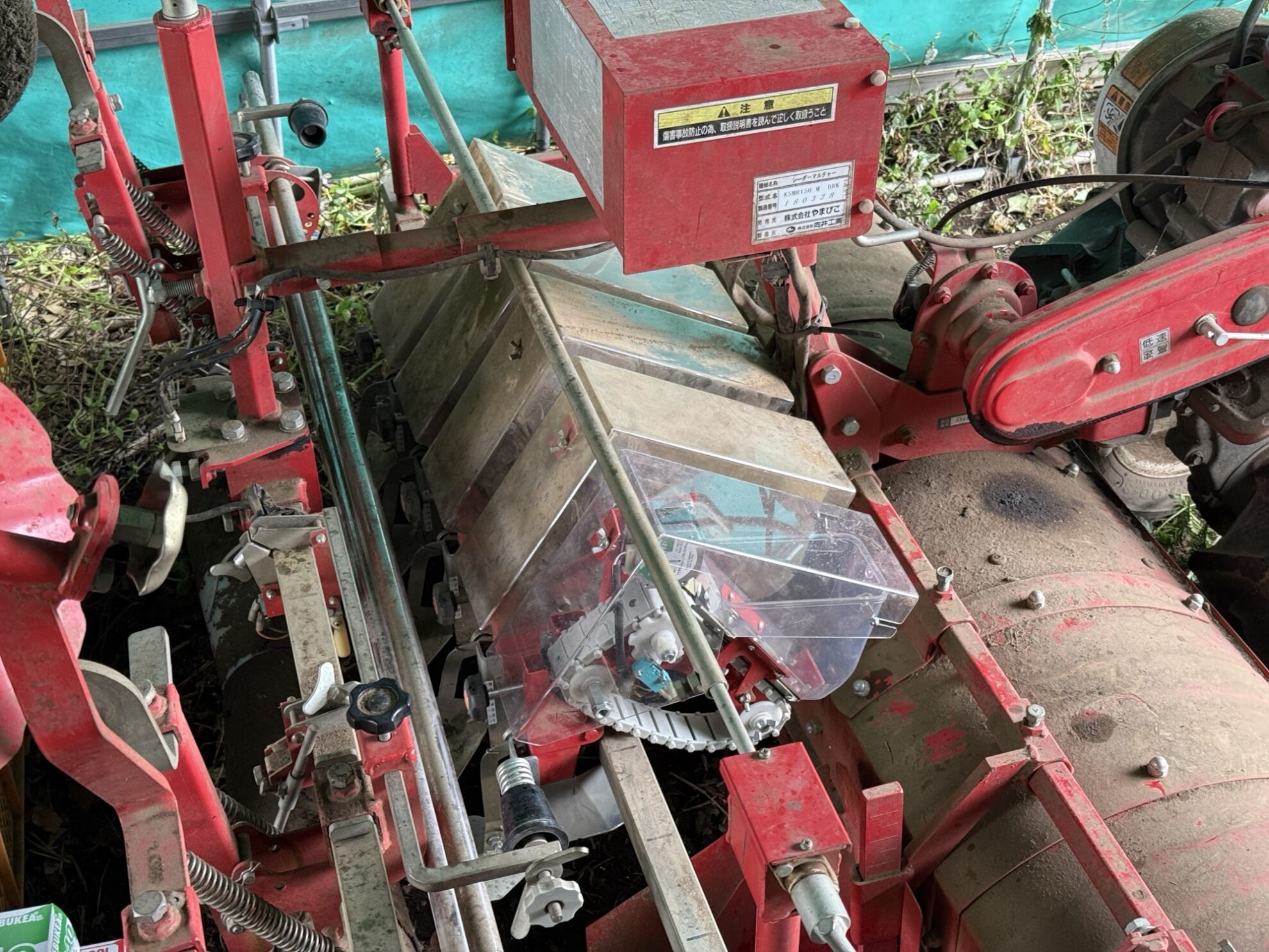 斉藤さんの下の畑の休憩所で、殆ど使用していなかったマルチシーダーの種まき機能を利用する為の準備作業。