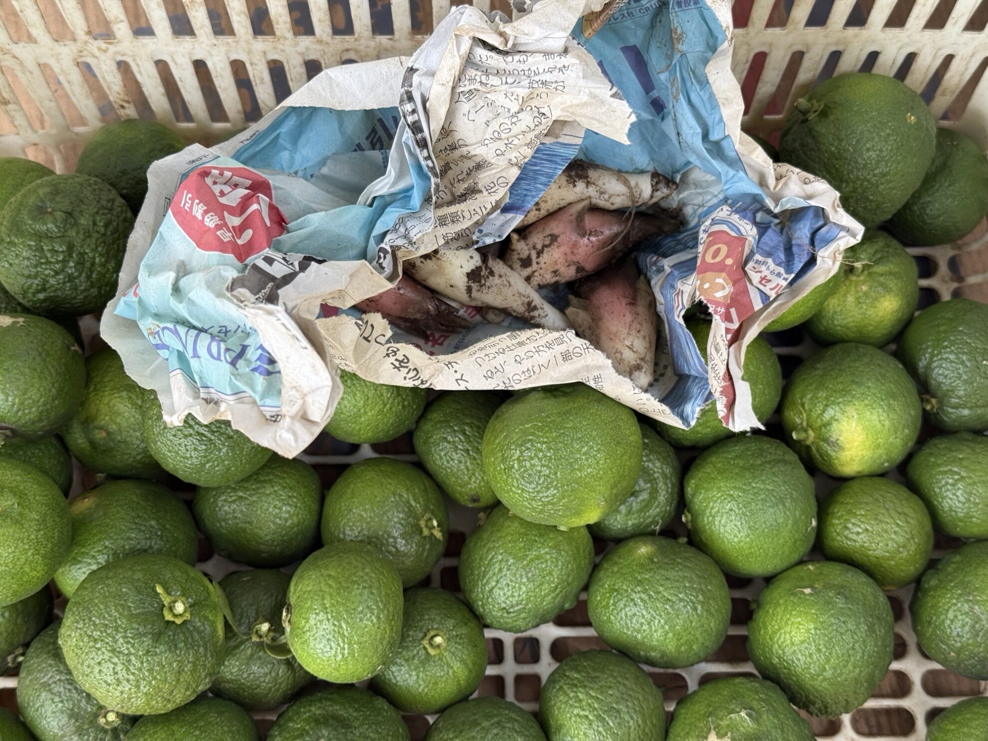 鈴木さん畑で、柚子、ミョウガの収穫作業。