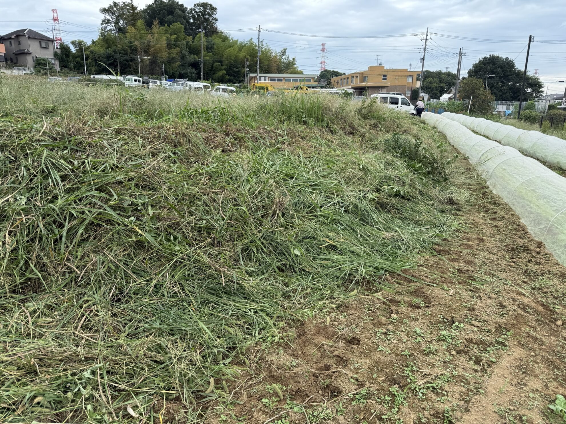 2025年10月6日(月)の作業記録 (玉ねぎの播種作業、斉藤さんの最下段畑をトラクターで耕耘作業、岩槻ネギ周りの除草作業、刈払機での除草作業、マルチシーダーに新しいバッテリーを取り付けてセンサーが動くかチェック作業)