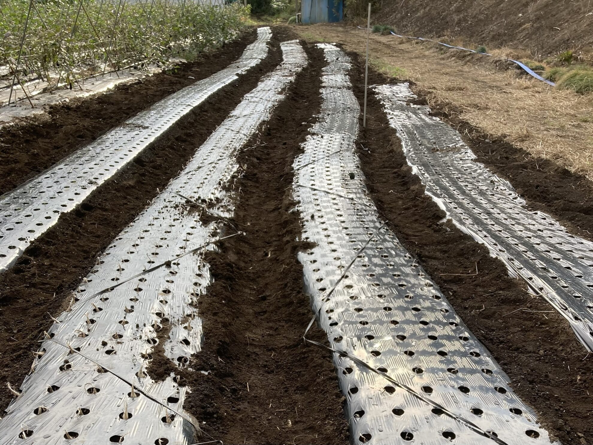 2025年10月20日(月)の作業記録 (らっきょうのマルチにハウスバンドを張る作業)