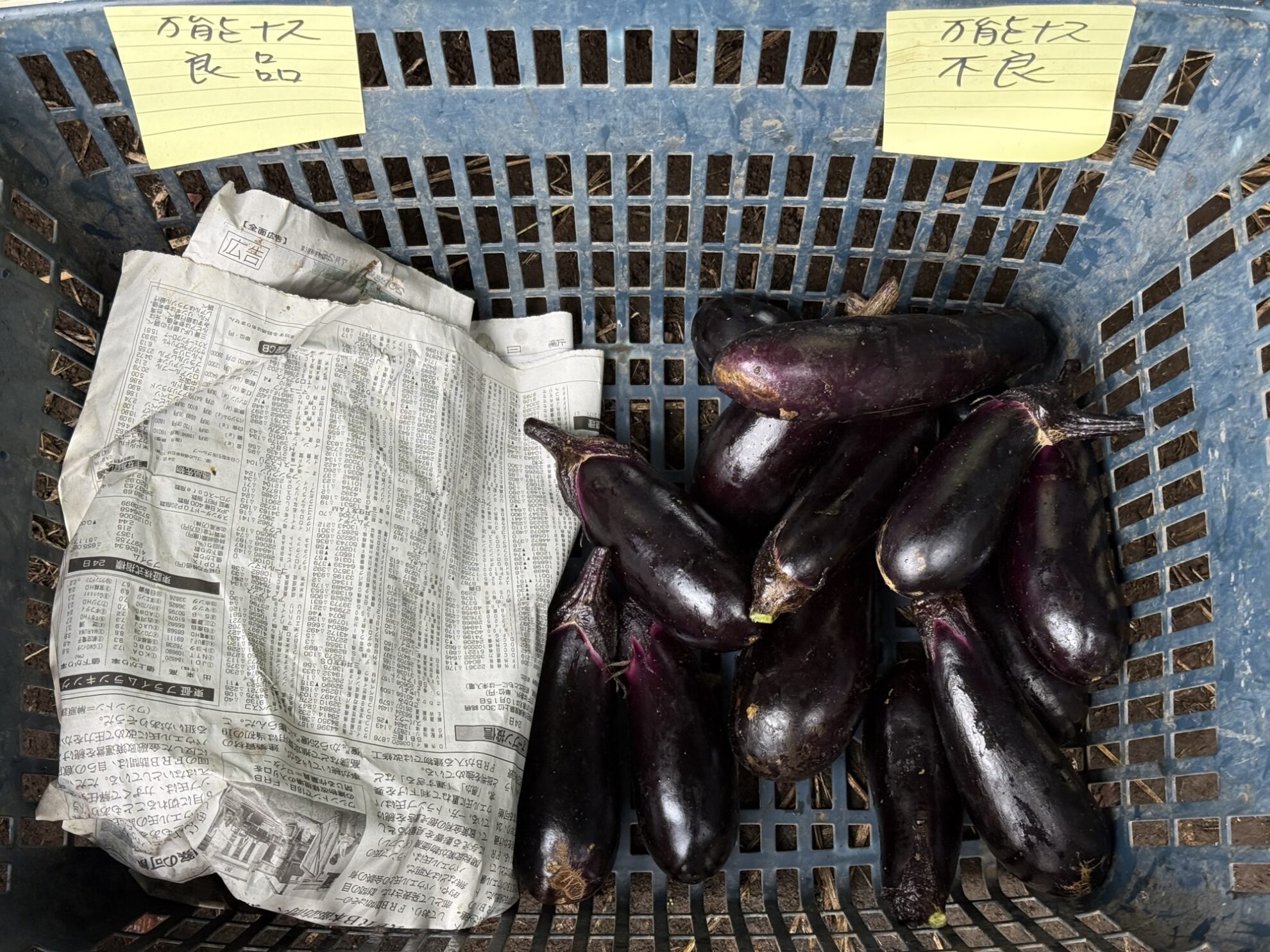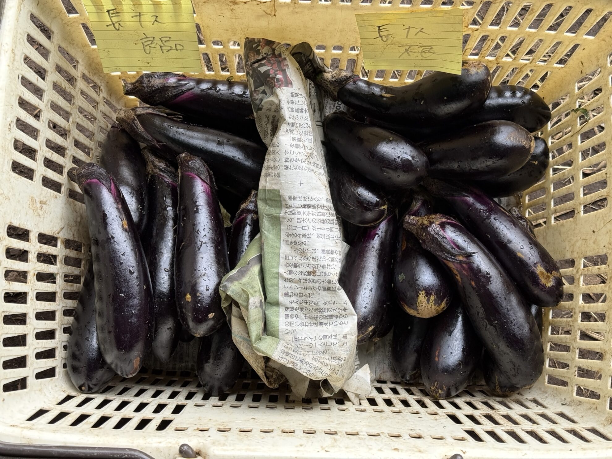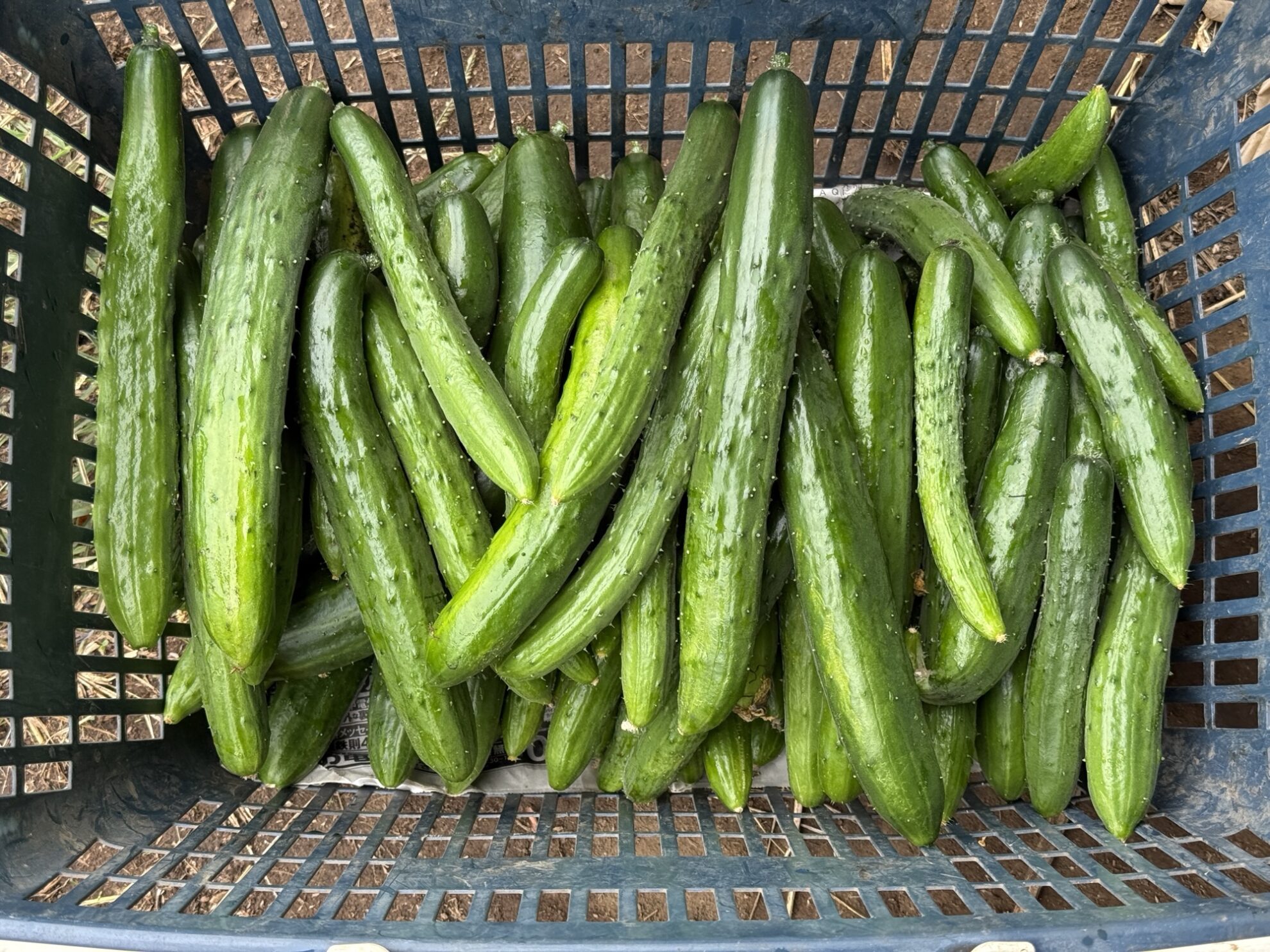 斉藤さんの下の畑で、長茄子、キュウリの収穫。