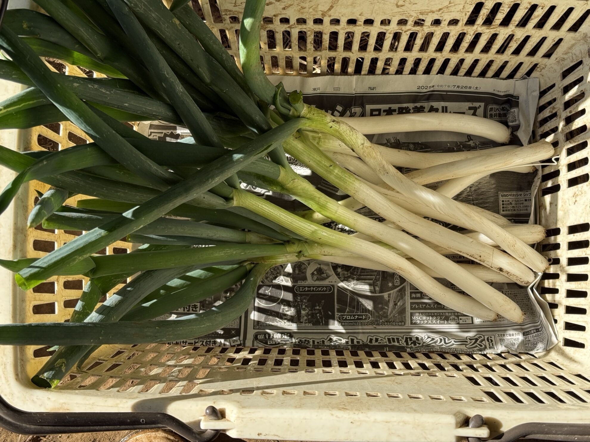 田中さんの下の畑で、長ネギの収穫作業。