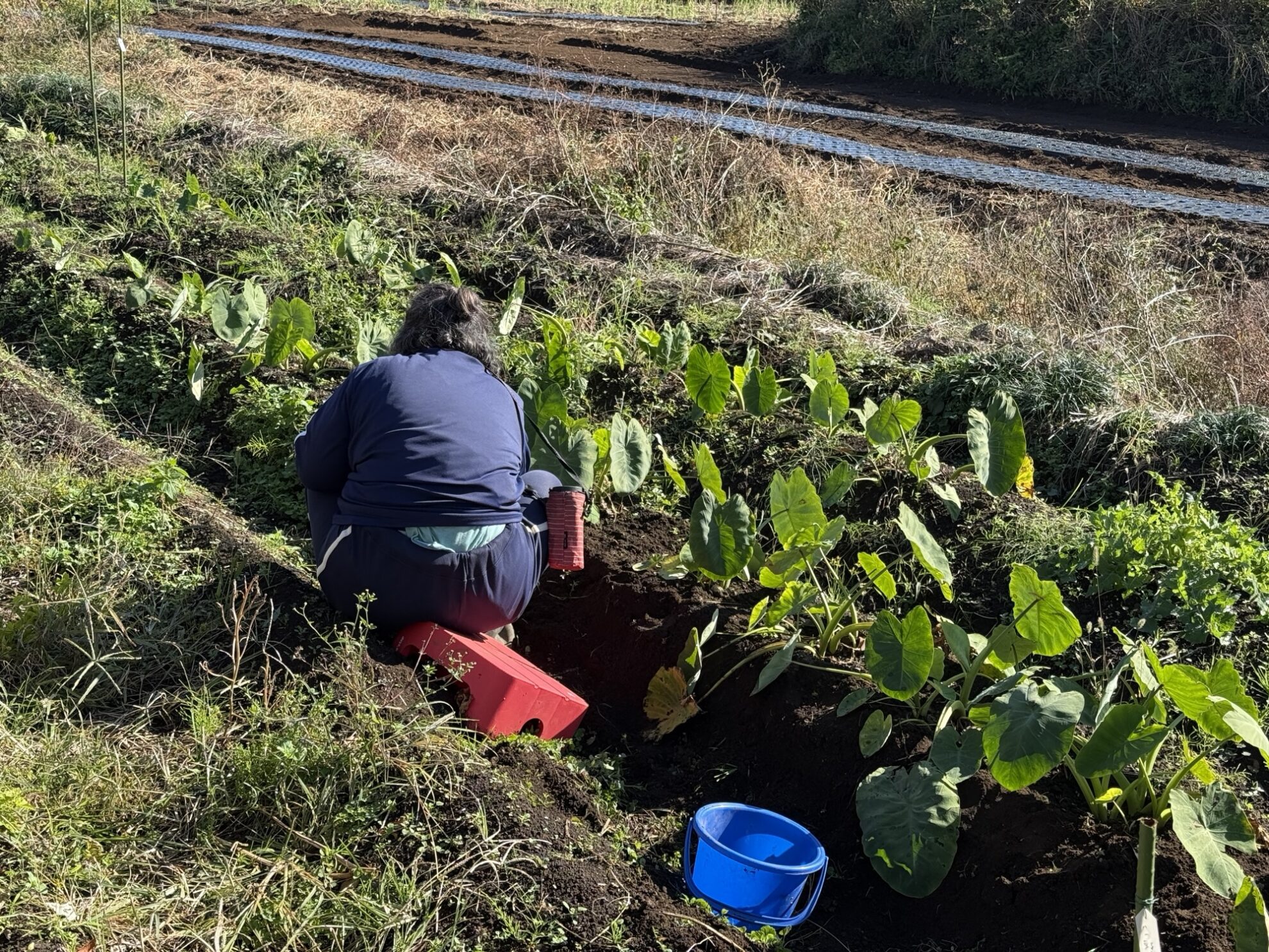 斉藤さんの下の畑で、里芋周りの除草作業。