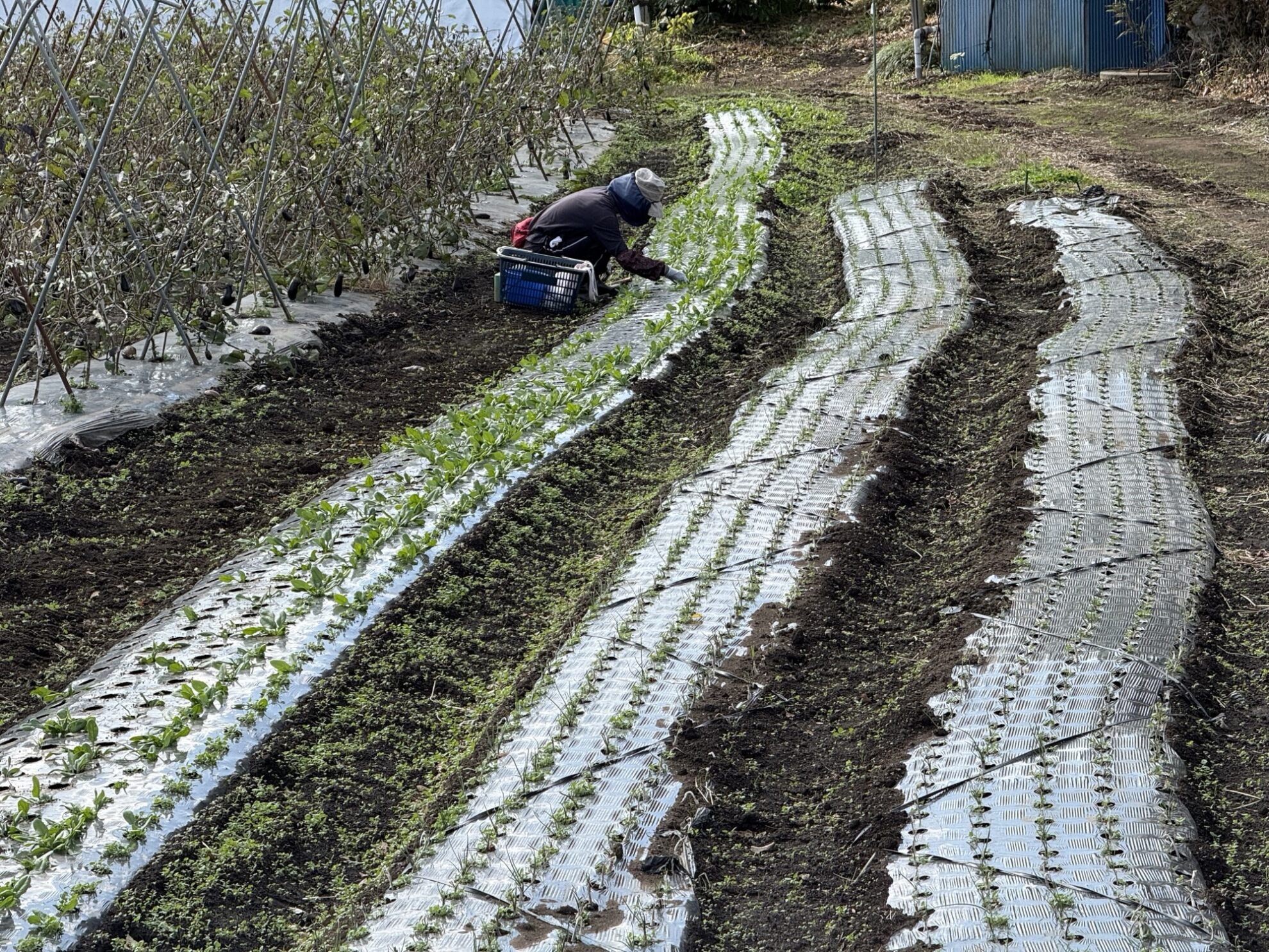 斉藤さんの下の畑で、ほうれん草(パレード)の除草作業。