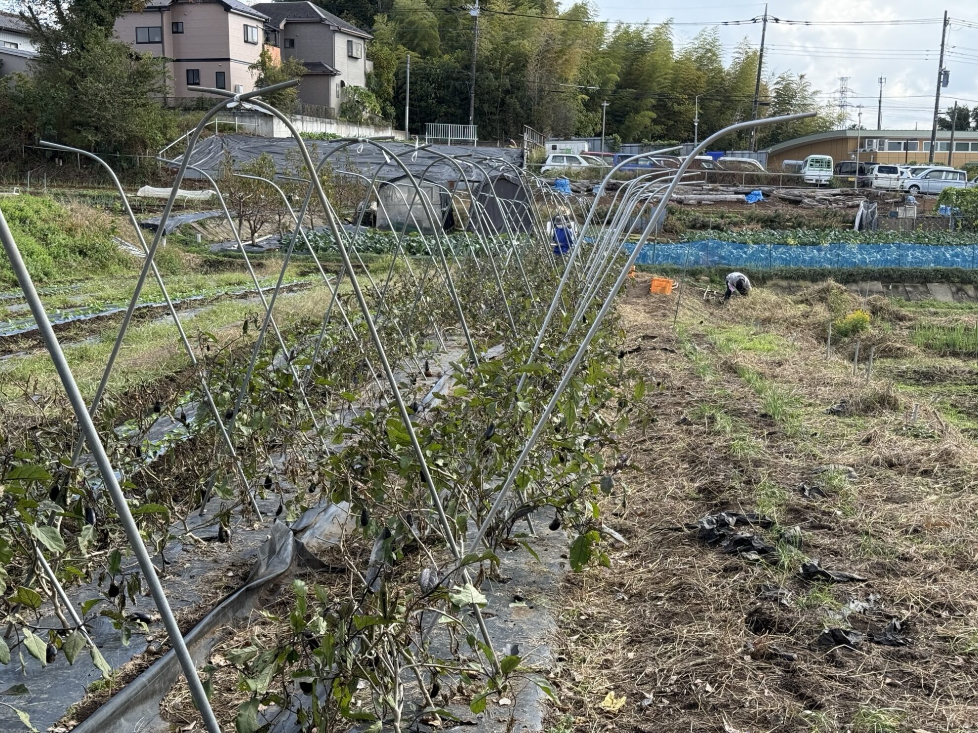 斉藤さんの中の畑で、万能茄子の撤去作業。