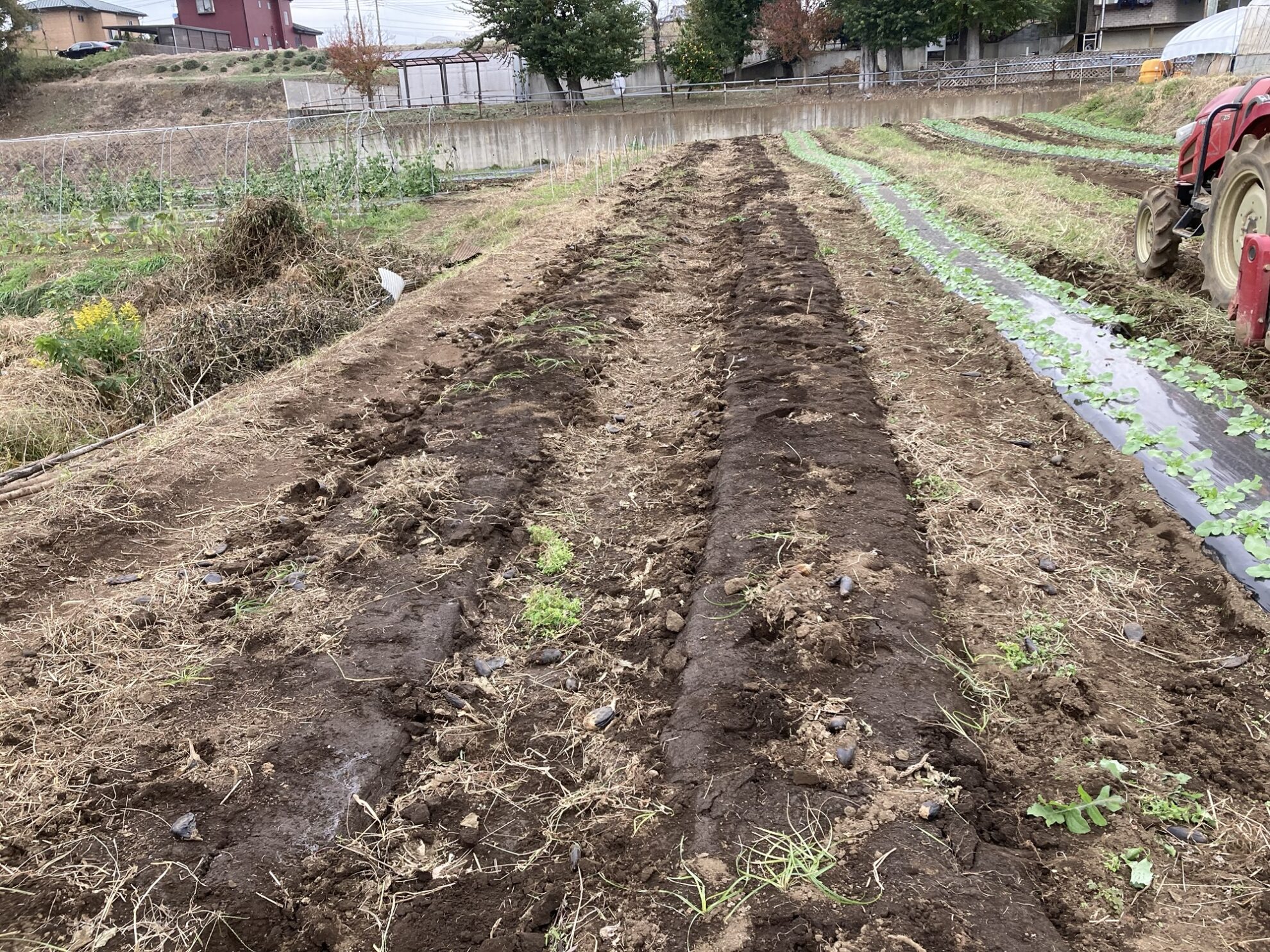 斉藤さんの中の畑の空きスペースをトラクターで耕耘作業。