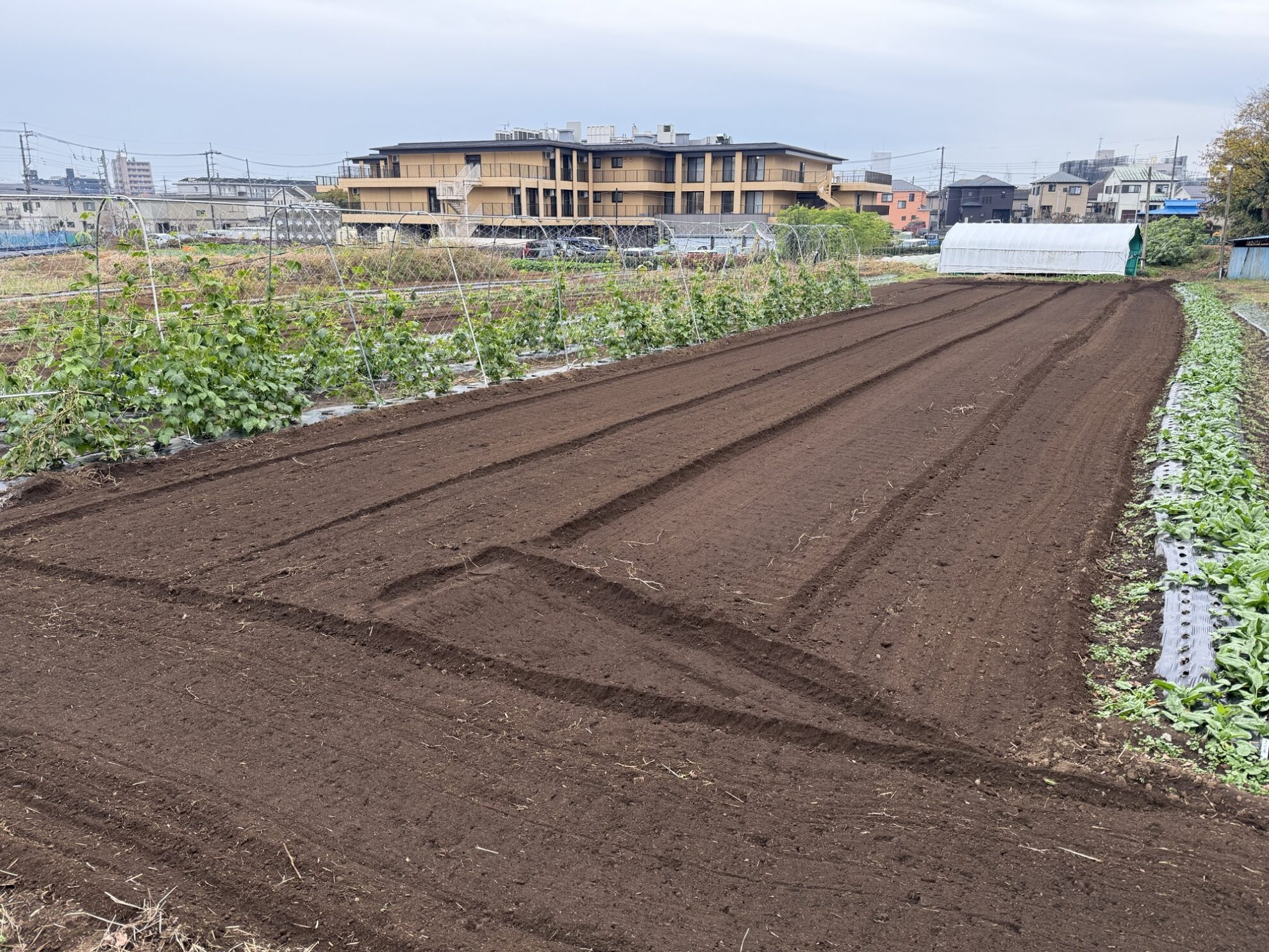 2025年11月25日(火)の作業記録 (ツルムラサキの撤去作業、玉ねぎ用に肥料撒きとトラクター耕耘作業、ニンニク周りの除草作業、井戸水ポンプ水抜き作業)