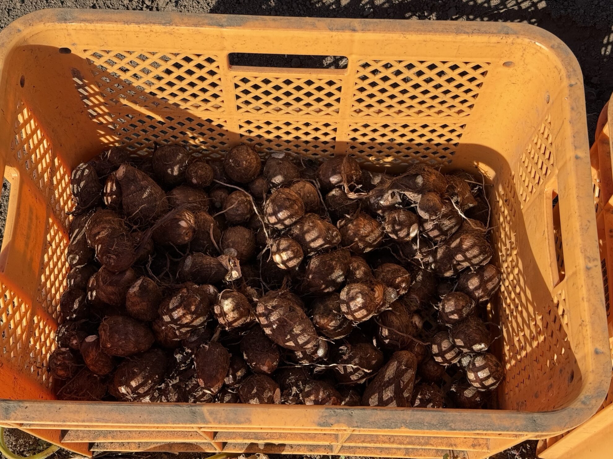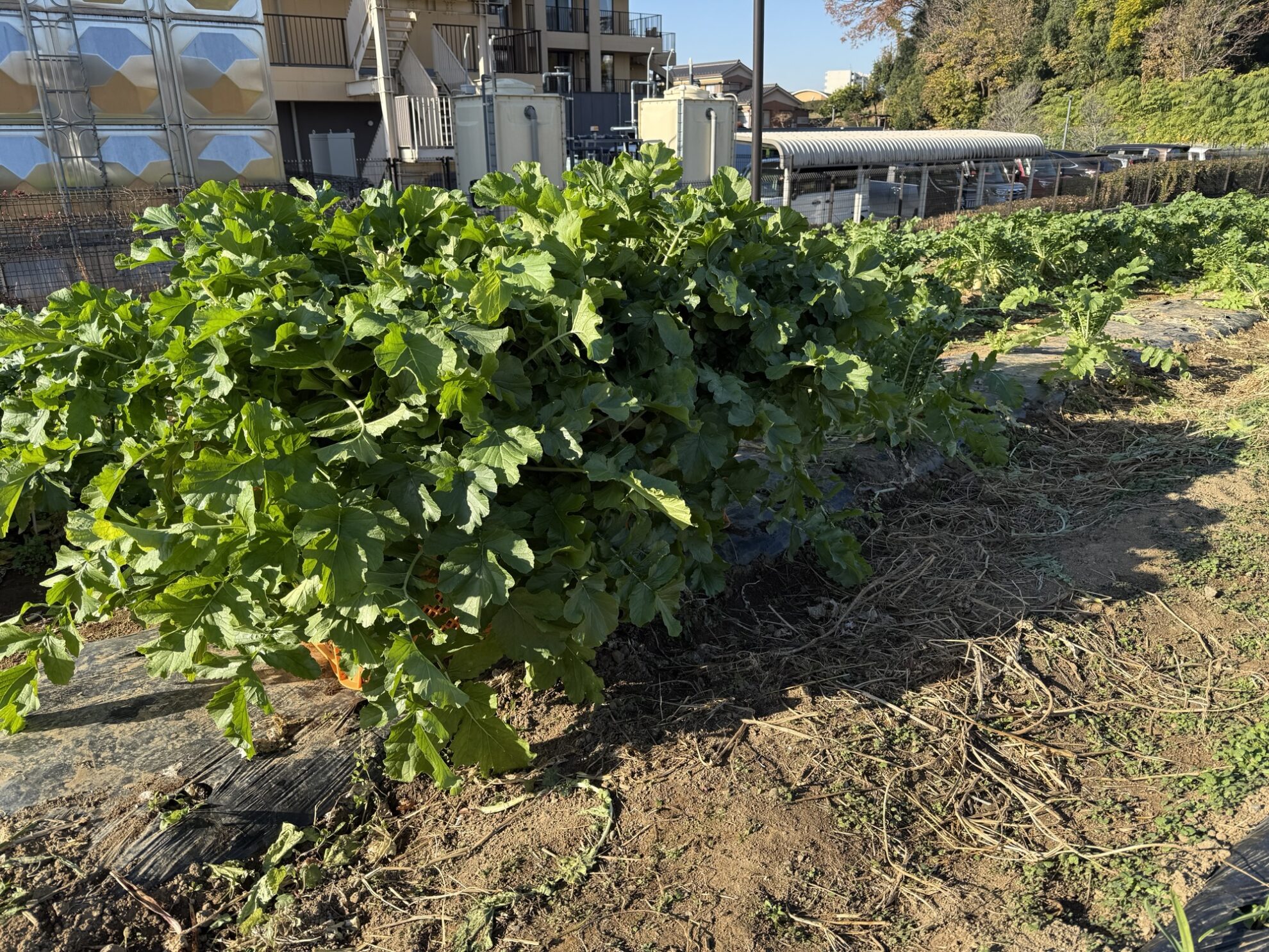 2025年12月1日(月)の作業記録 (春菊が今季初収穫、里芋の追肥作業、大根類の追肥作業)