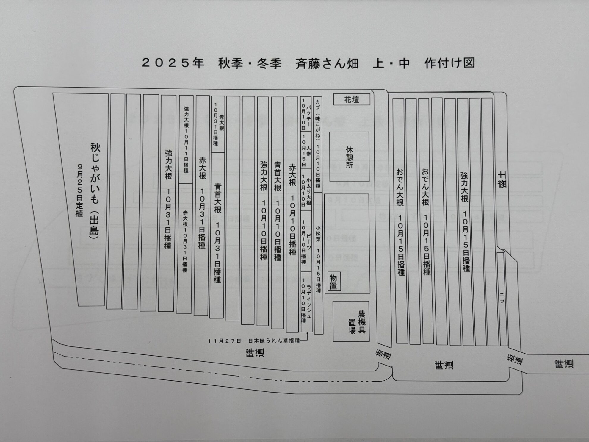 斉藤さんの下の畑で、ほうれん草、インゲンの収穫作業。