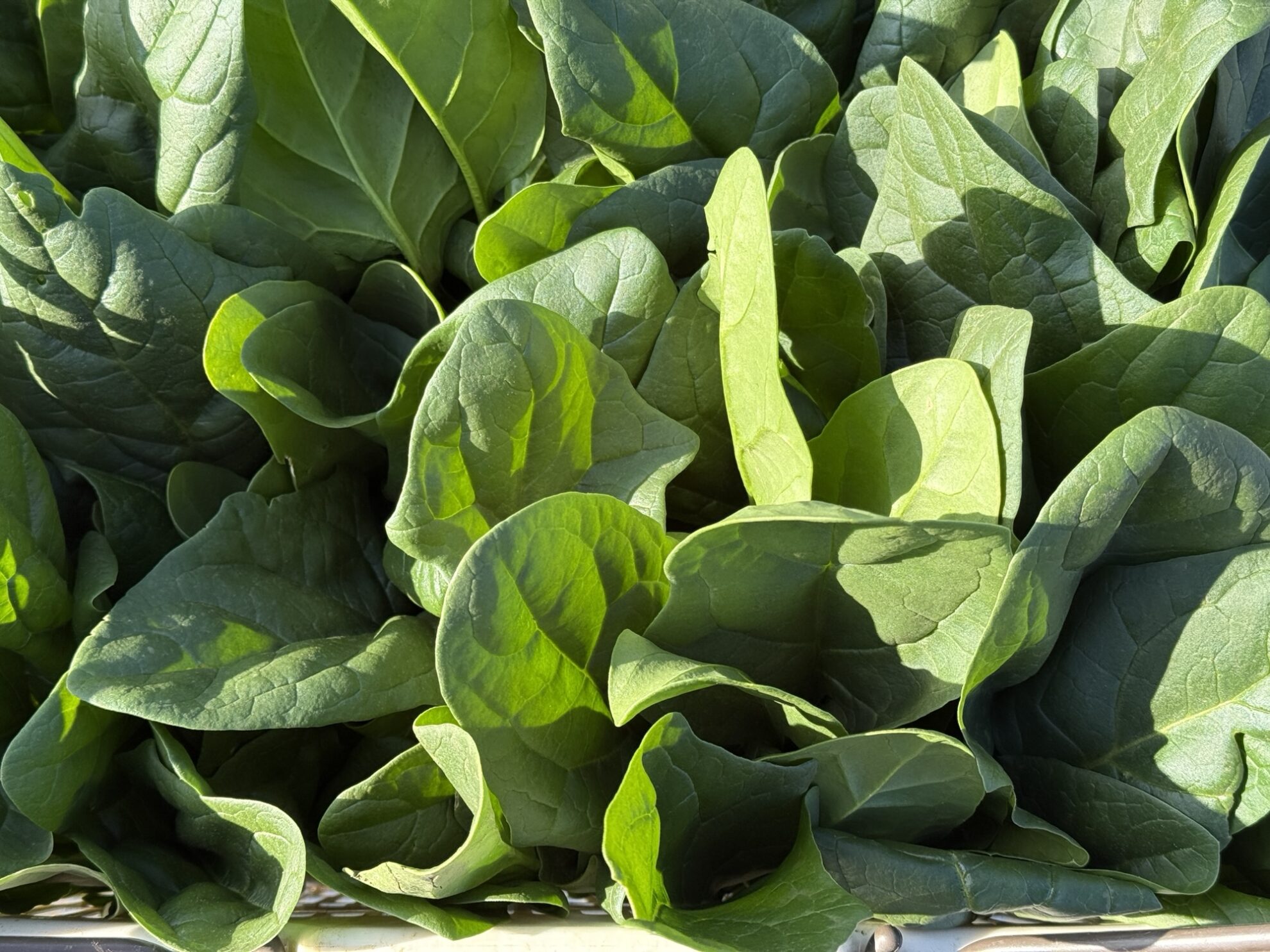 斉藤さんの下の畑で、ほうれん草の収穫作業。