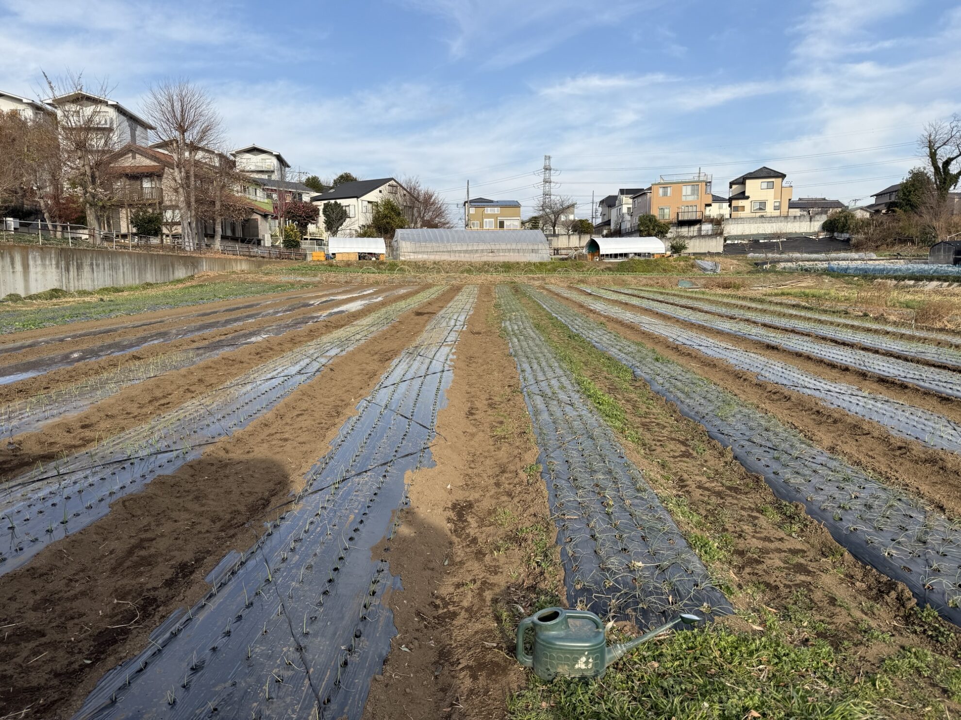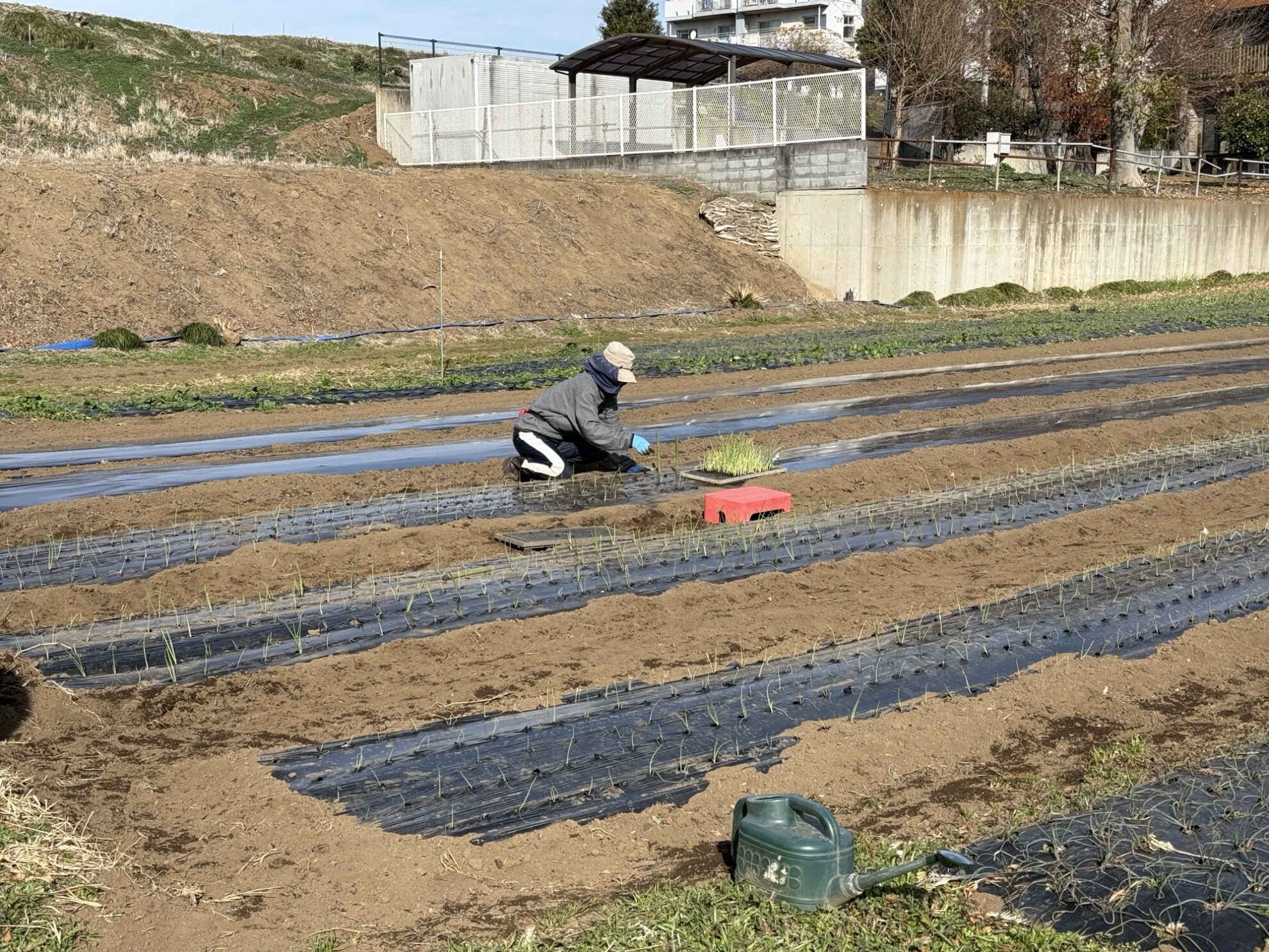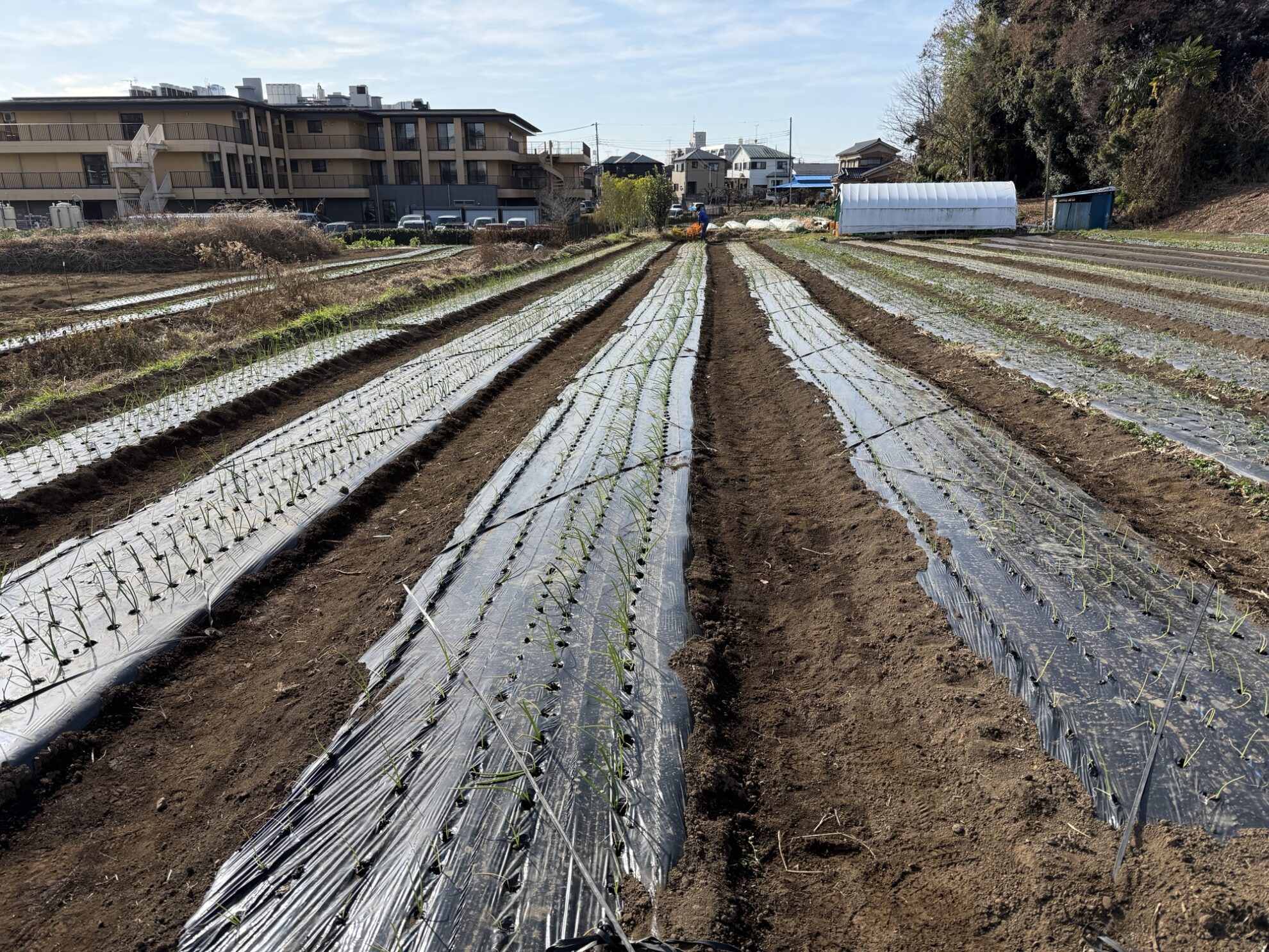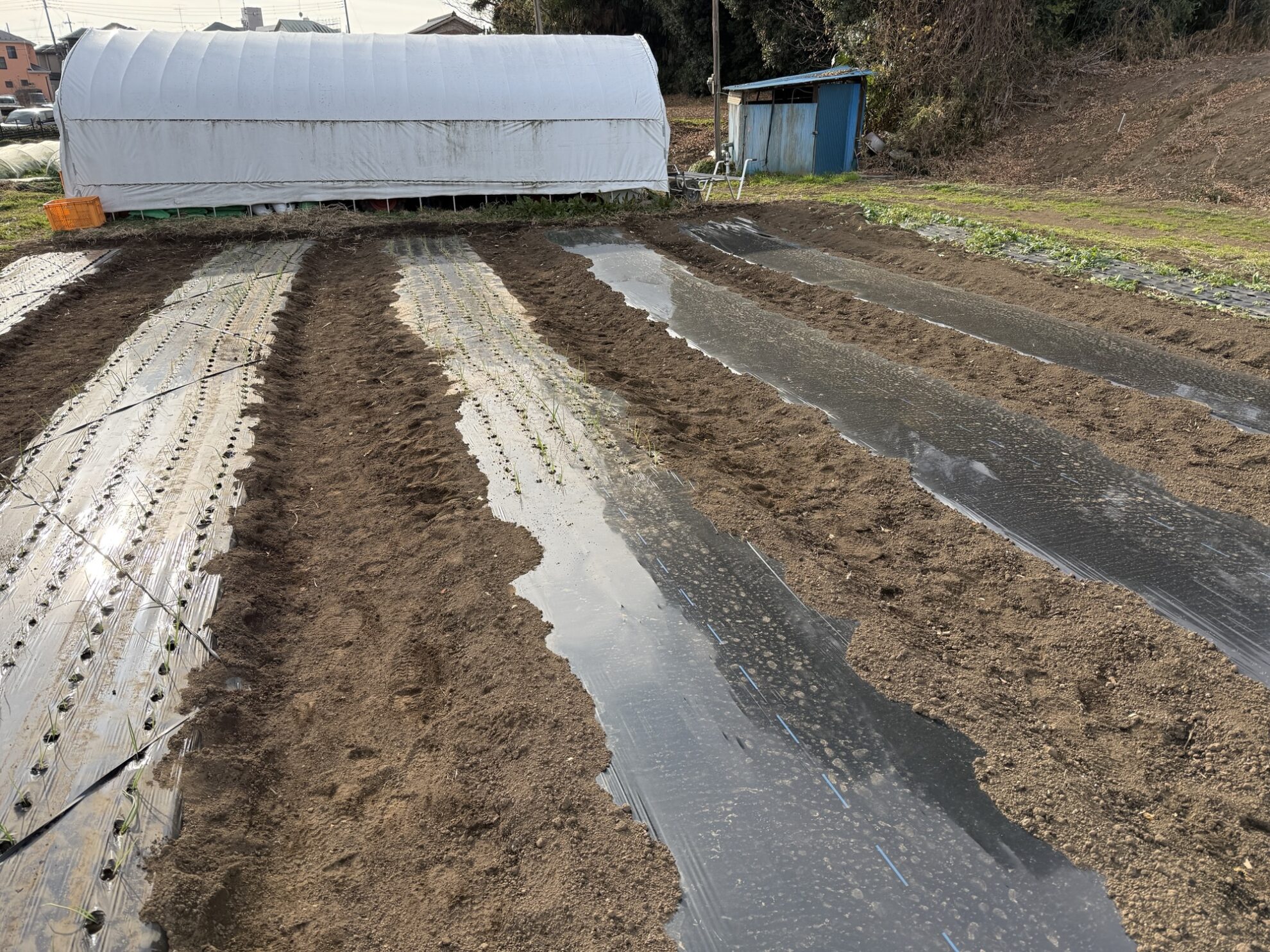 2025年12月23日(火)の作業記録 (玉ねぎの定植補植作業、玉ねぎのマルチの風対策用にハウスバンド張り作業)
