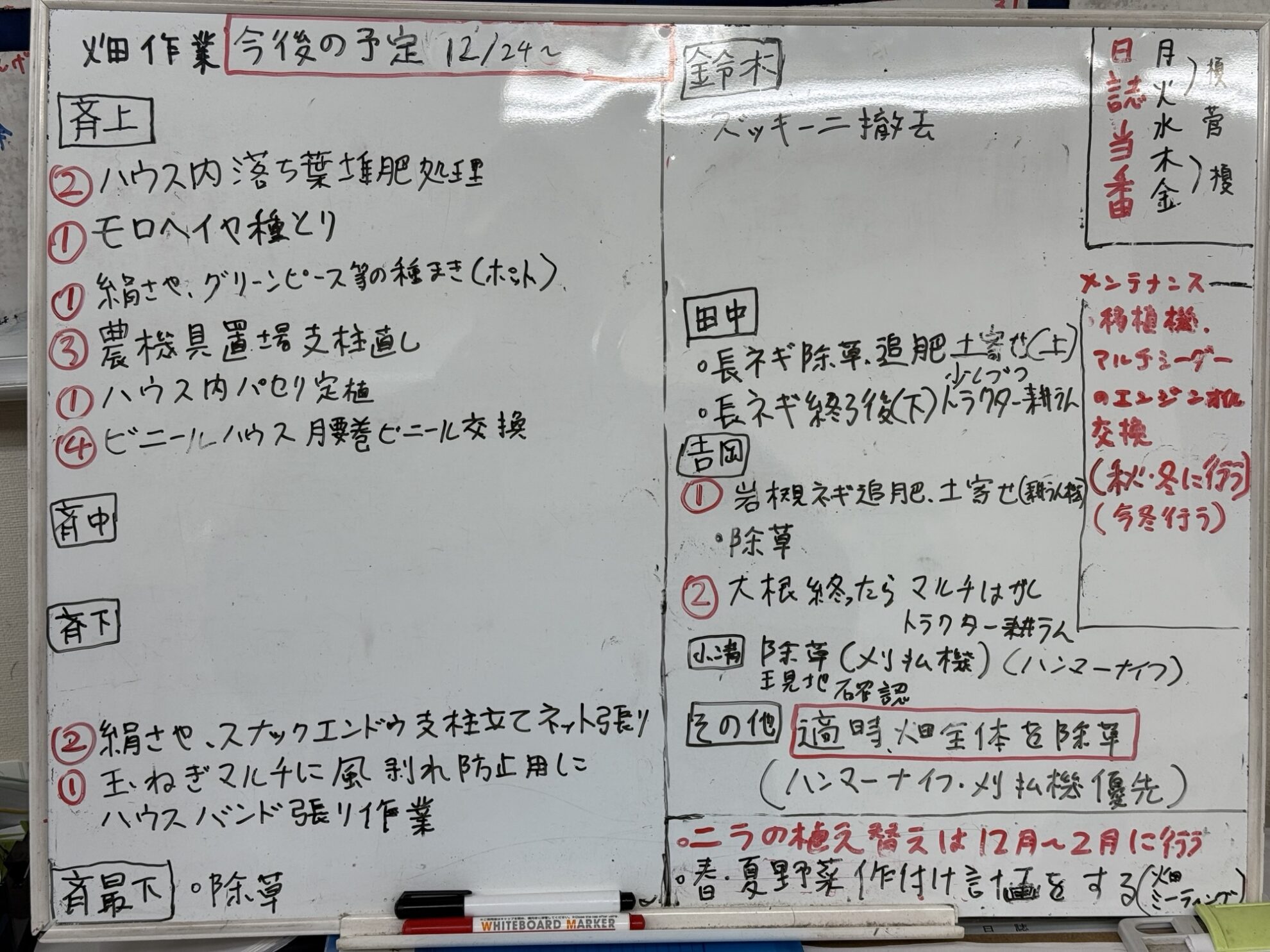 畑作業の予定書き出し作業。