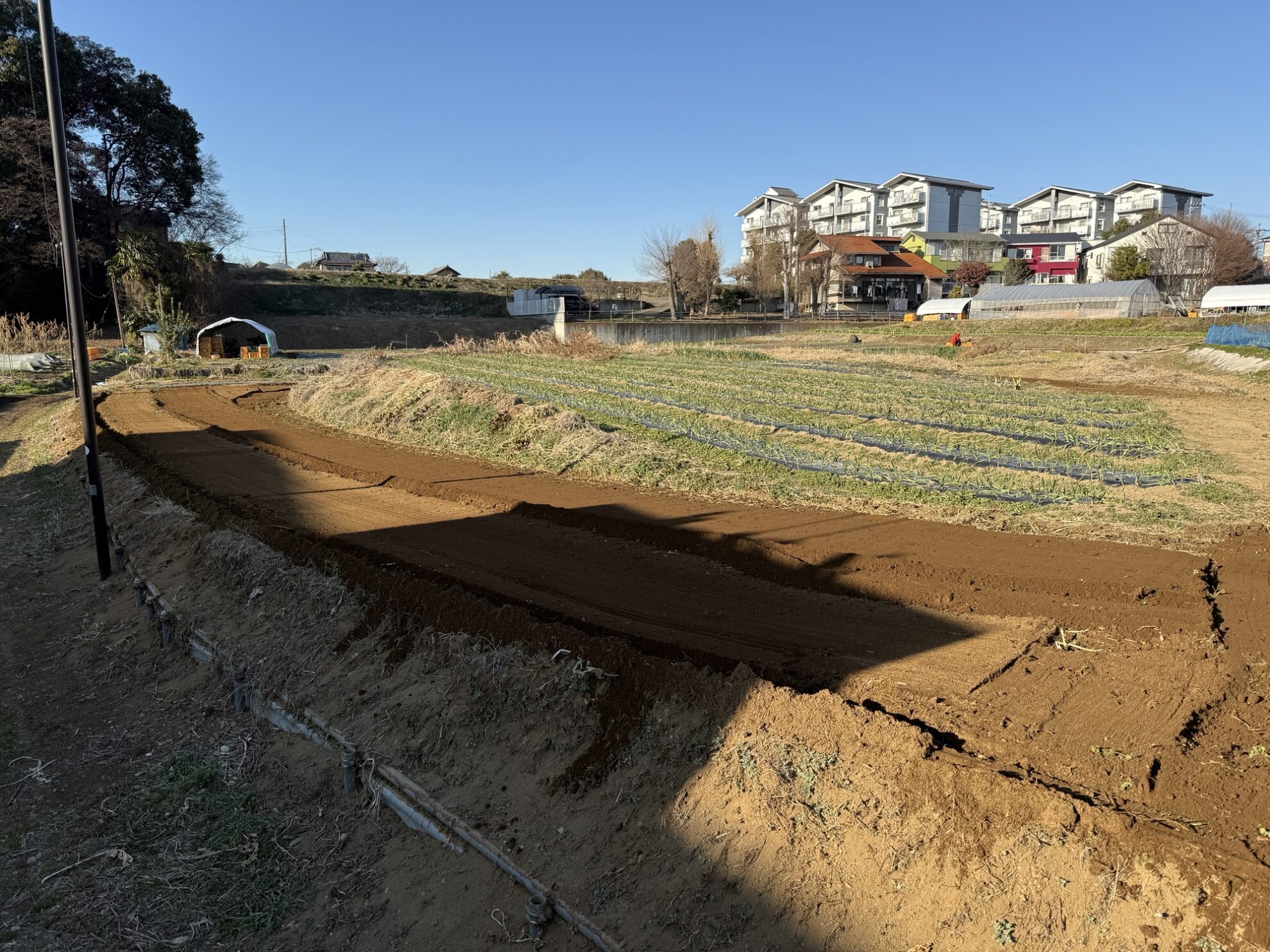2026年1月13日(火)の作業記録 (大根のビニールトンネル剥がれ直し、ブロッコリーの防虫ネット張り作業、堆肥置き場作り、吉岡さん畑をトラクターで耕耘作業)