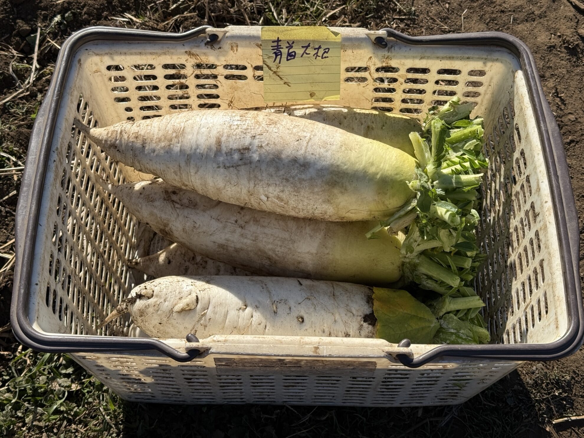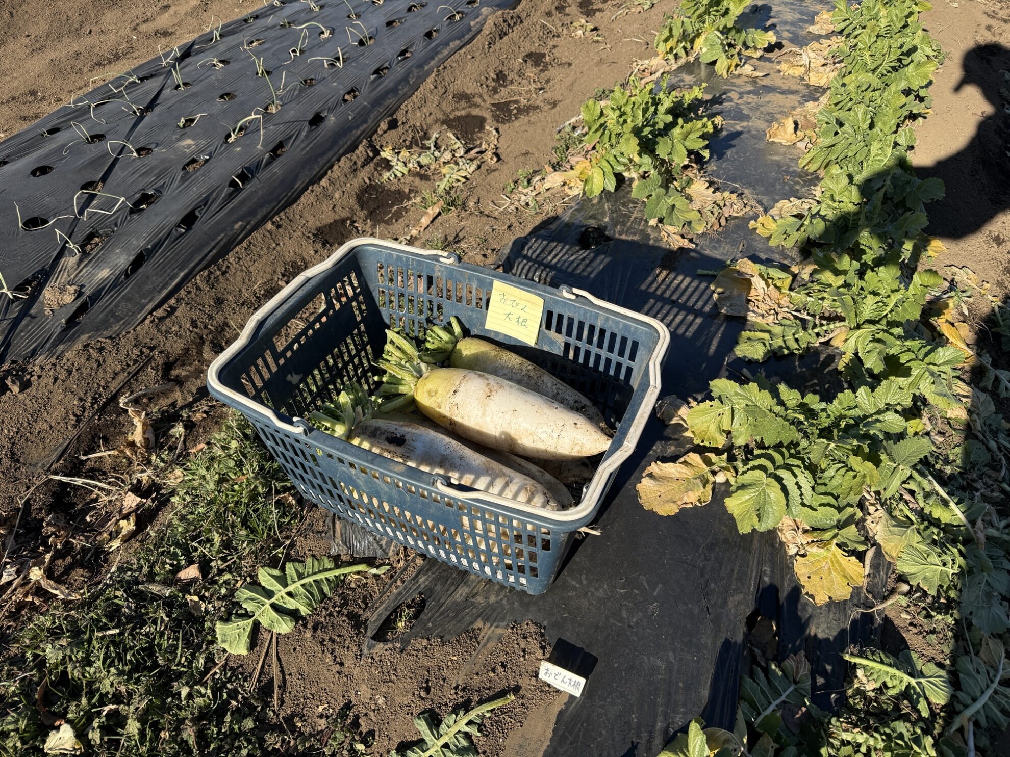 斉藤さんの中の畑で、おでん大根の収穫作業。