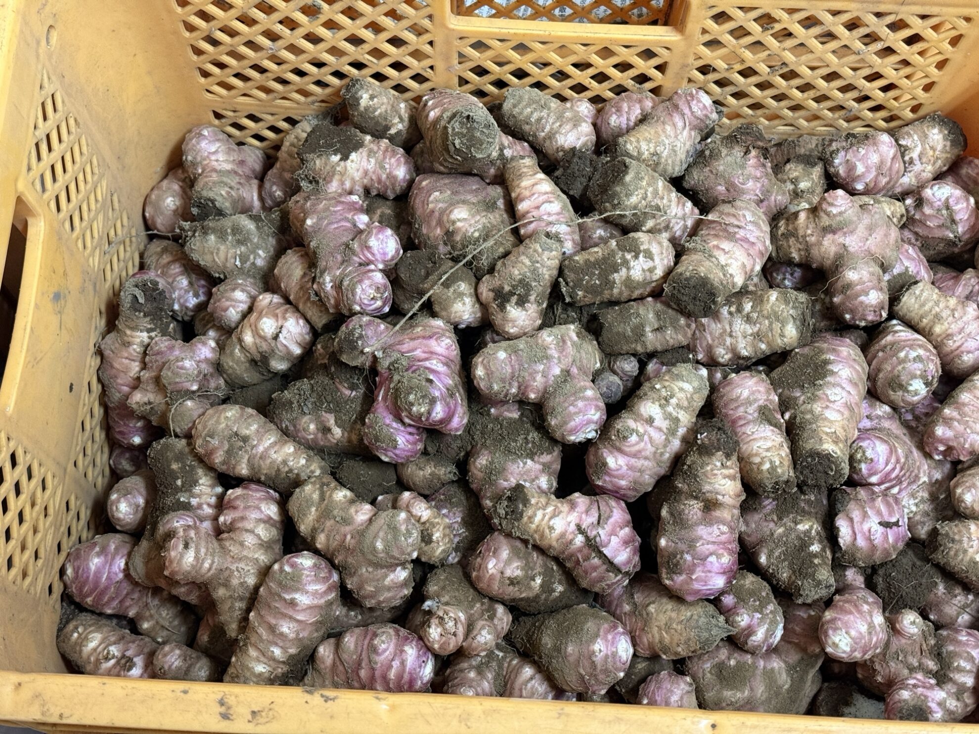 小溝畑で菊芋の収穫作業。