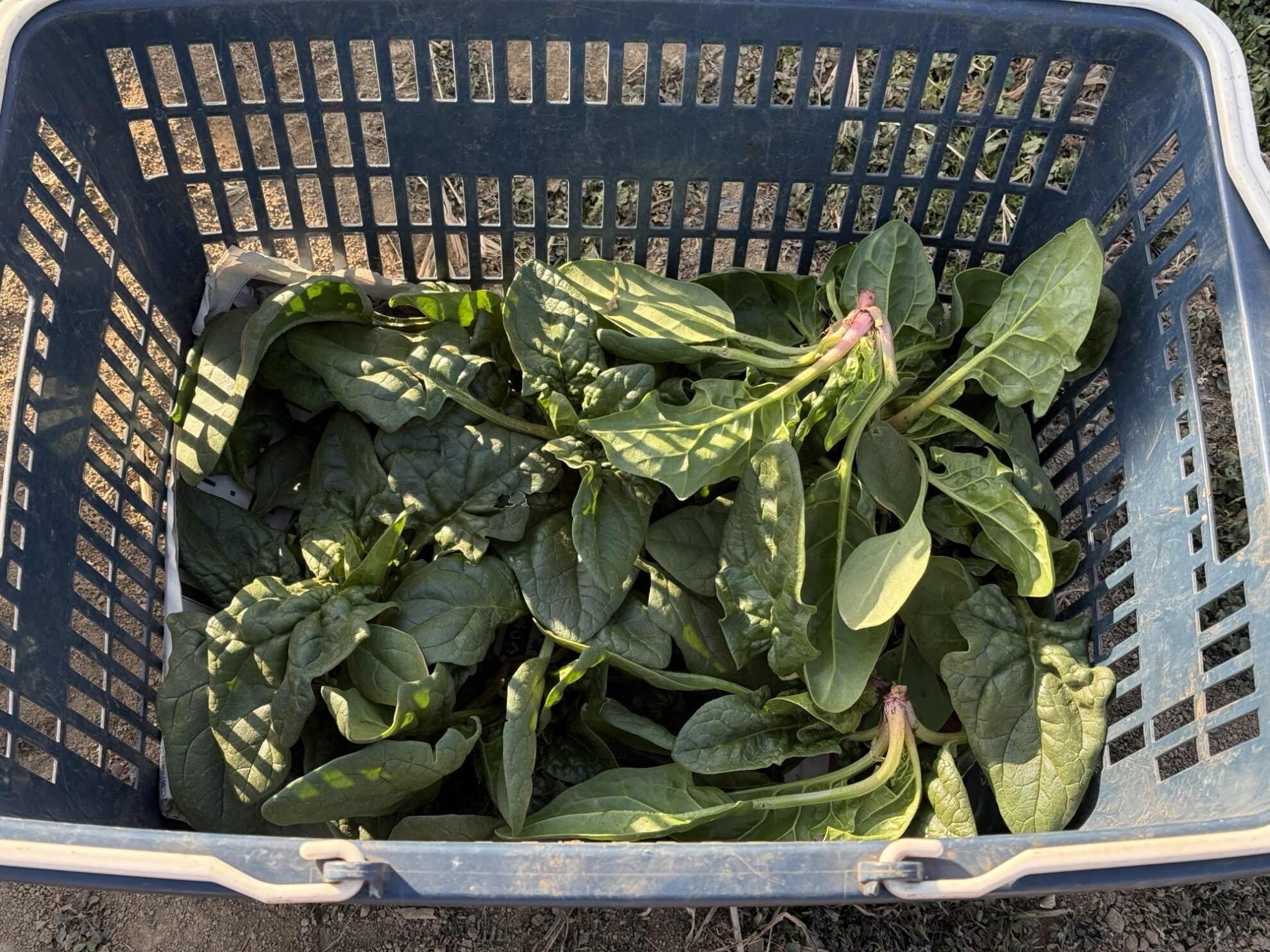 吉岡さん畑で、ほうれん草の収穫作業。