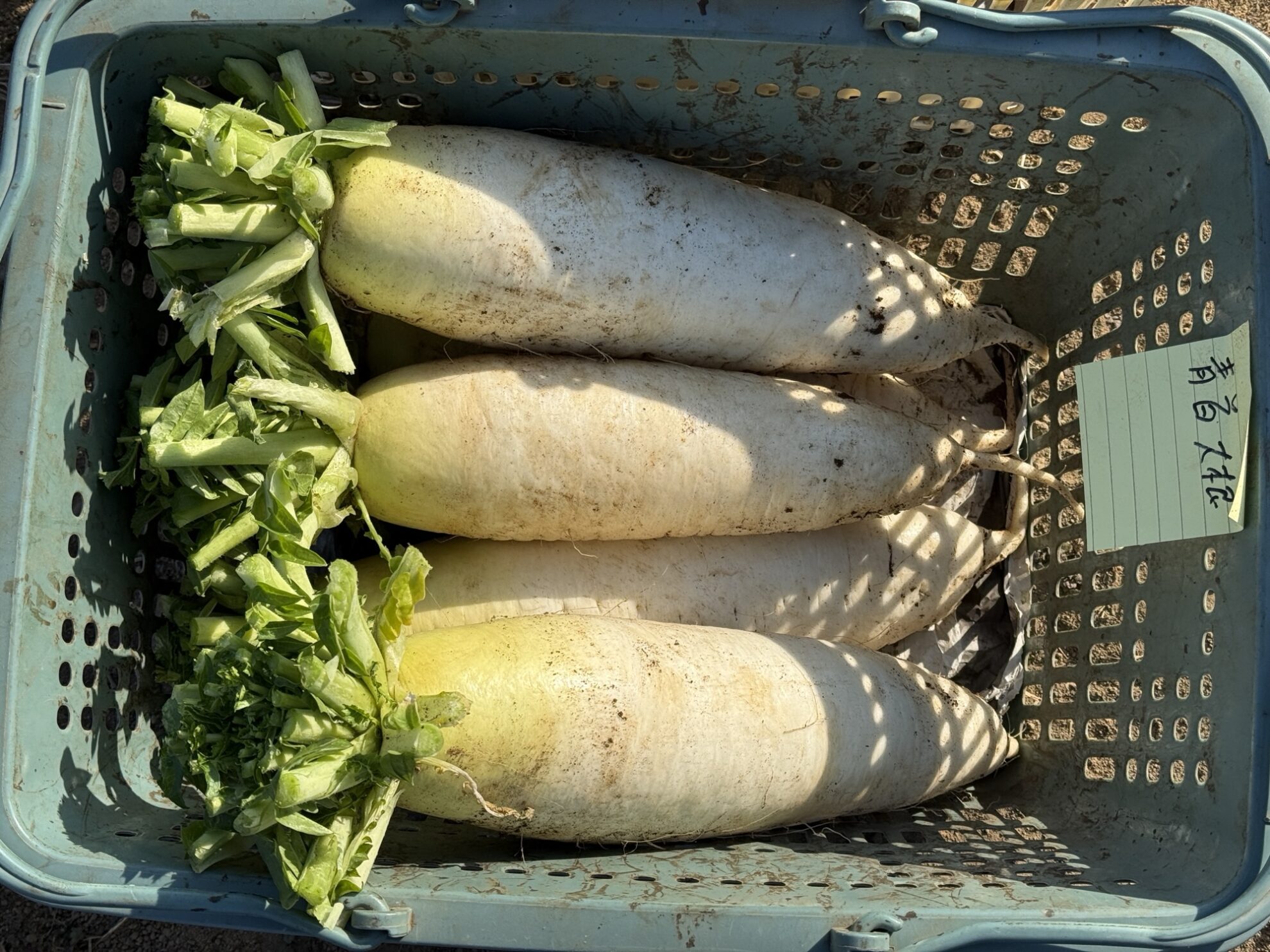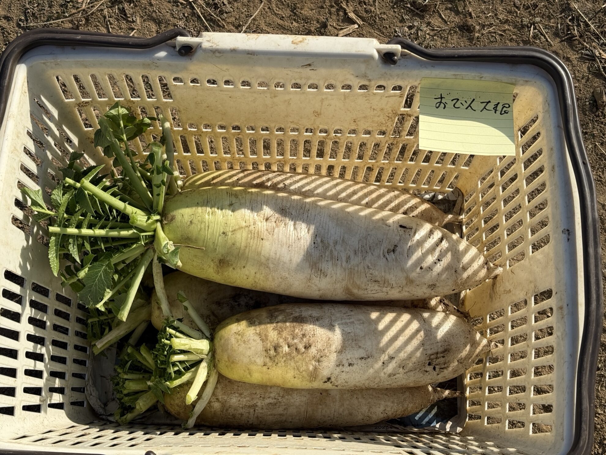 斉藤さんの中の畑で、おでん大根の収穫作業。