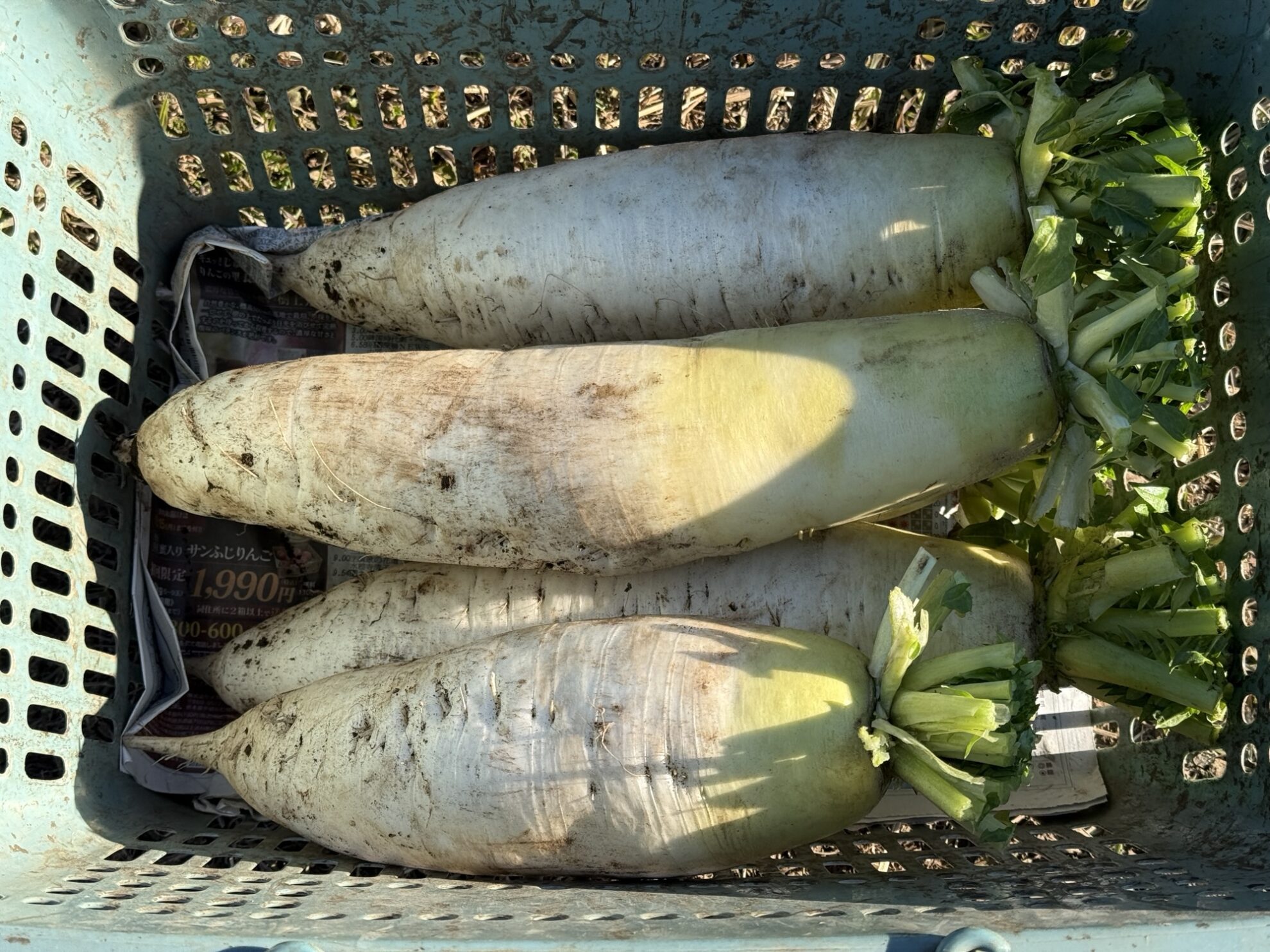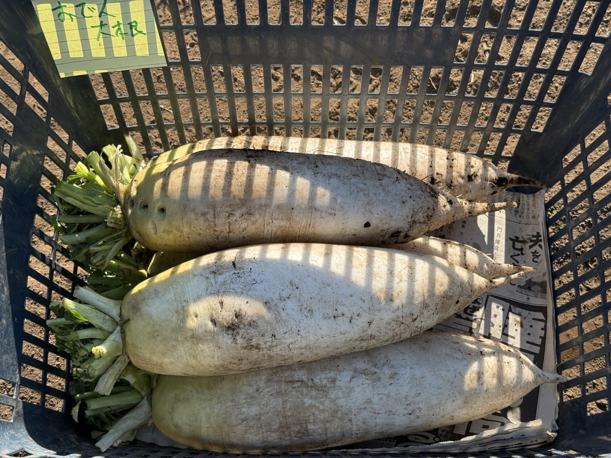 斉藤さんの中の畑で、おでん大根の収穫作業。