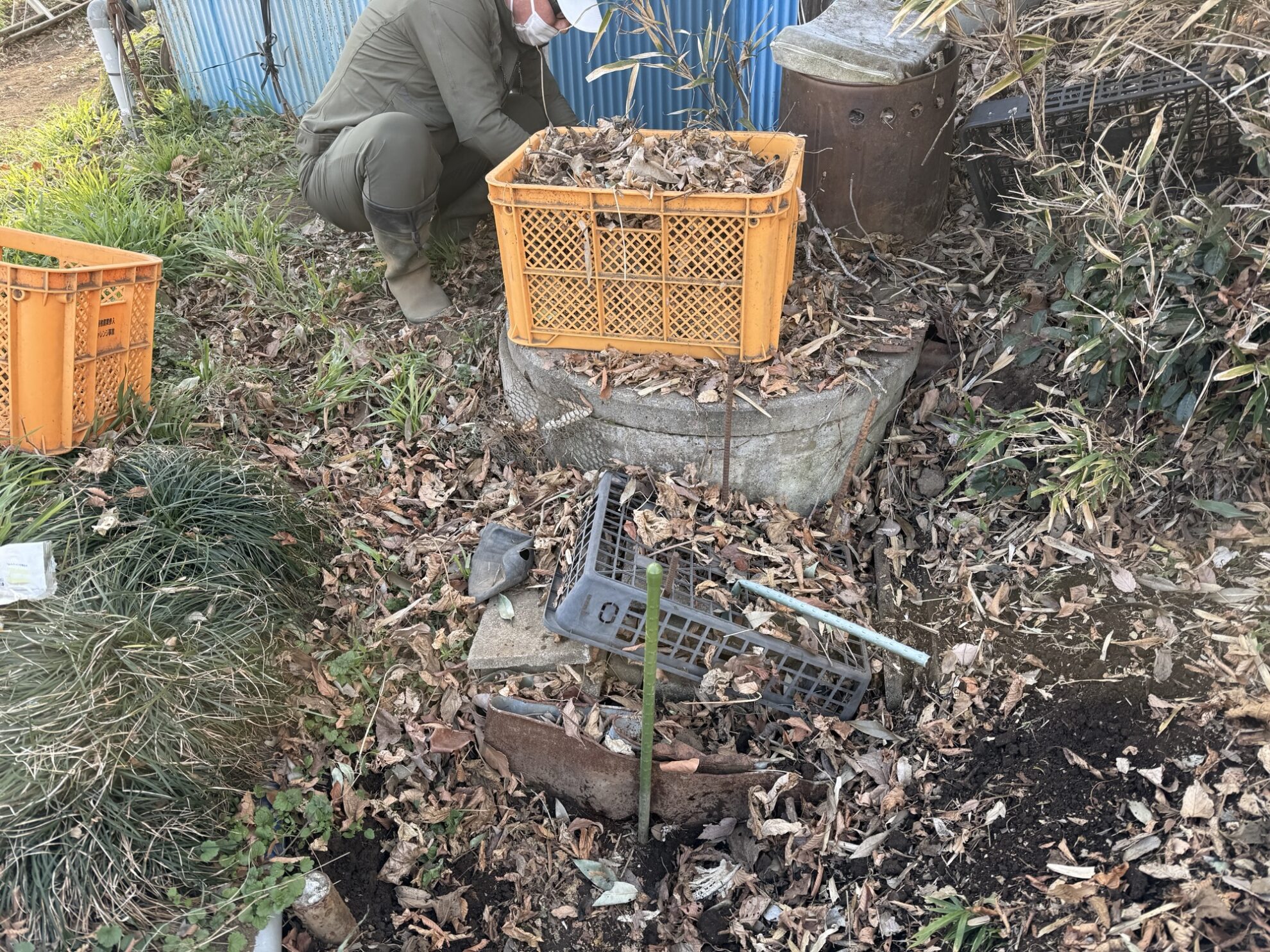 2026年1月29日(木)の作業記録 (籾殻をネットから袋へ入れ替える作業、踏み込み温床用の落ち葉拾い作業)
