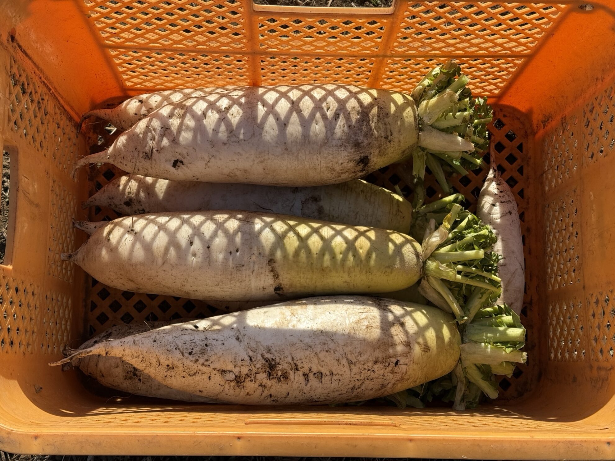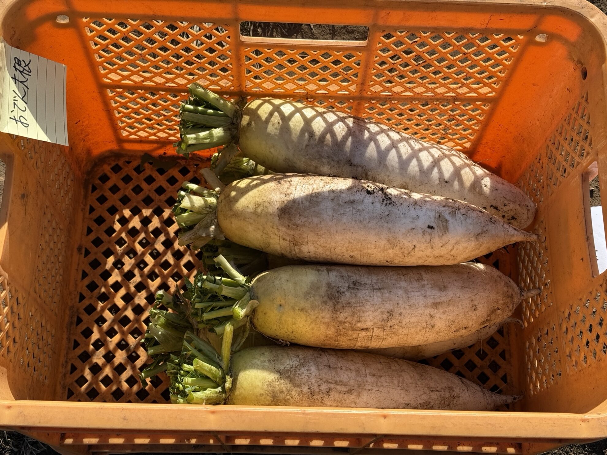 斉藤さんの中の畑で、おでん大根の収穫作業。