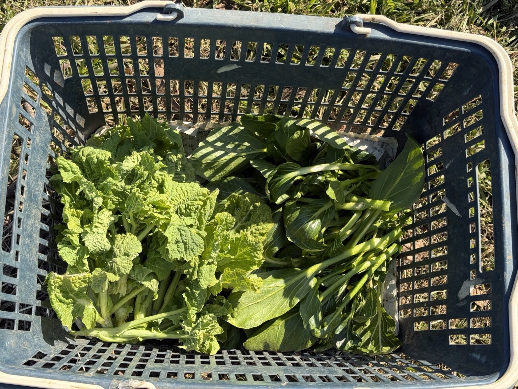 田中さんの下の畑で、ルッコラ、赤かぶ、小松菜の収穫作業。