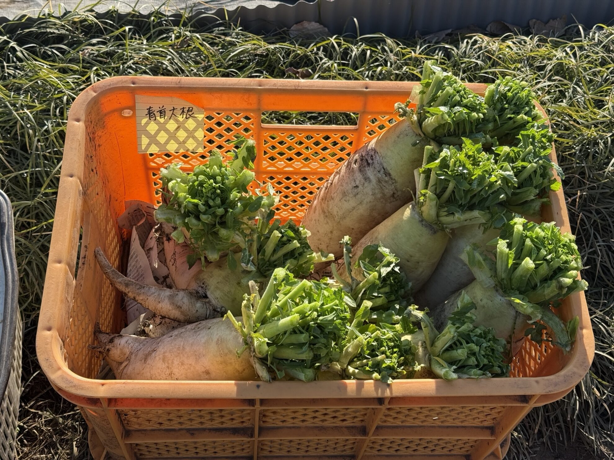 斉藤さんの中の畑で、おでん大根の収穫作業。