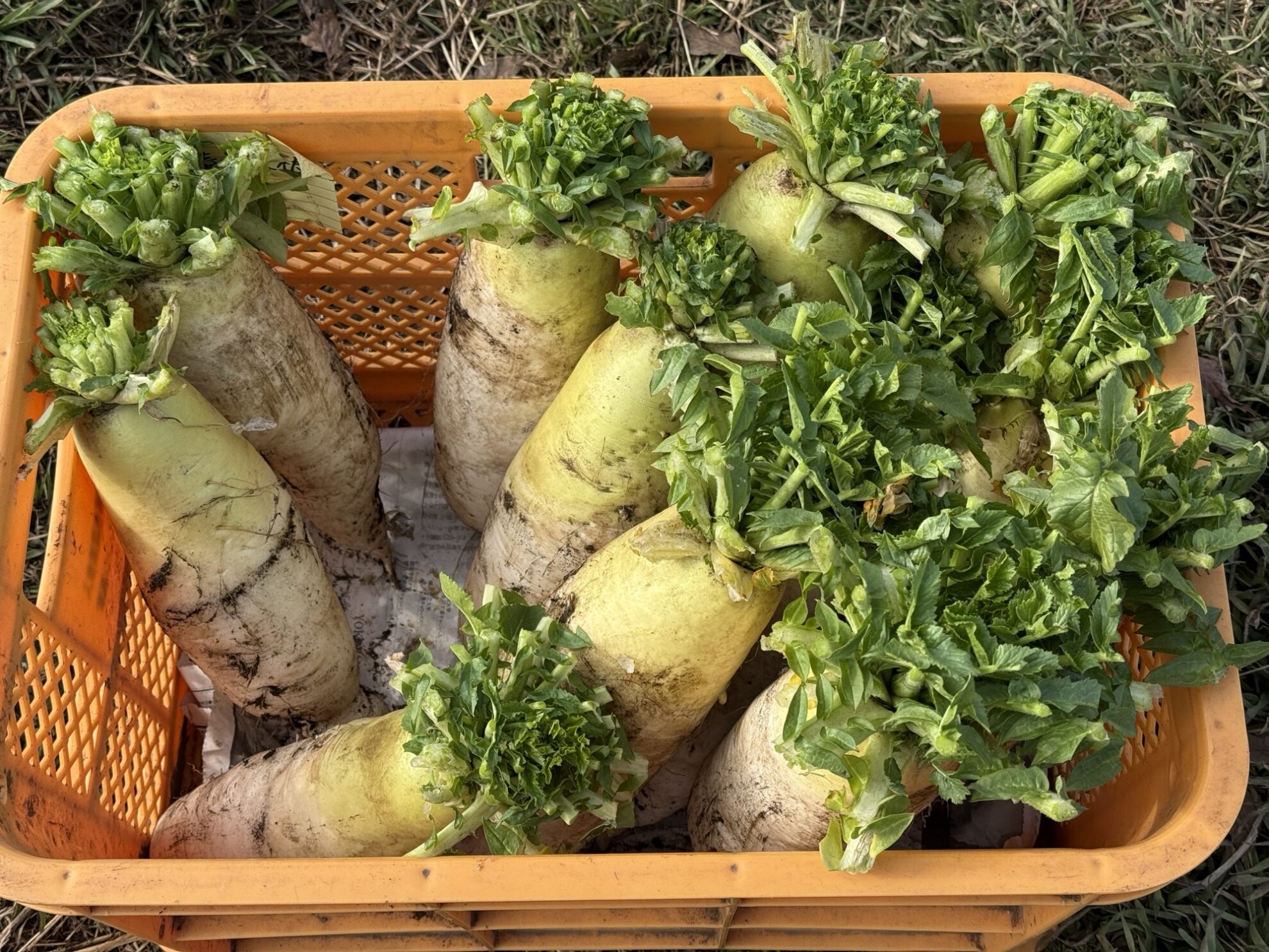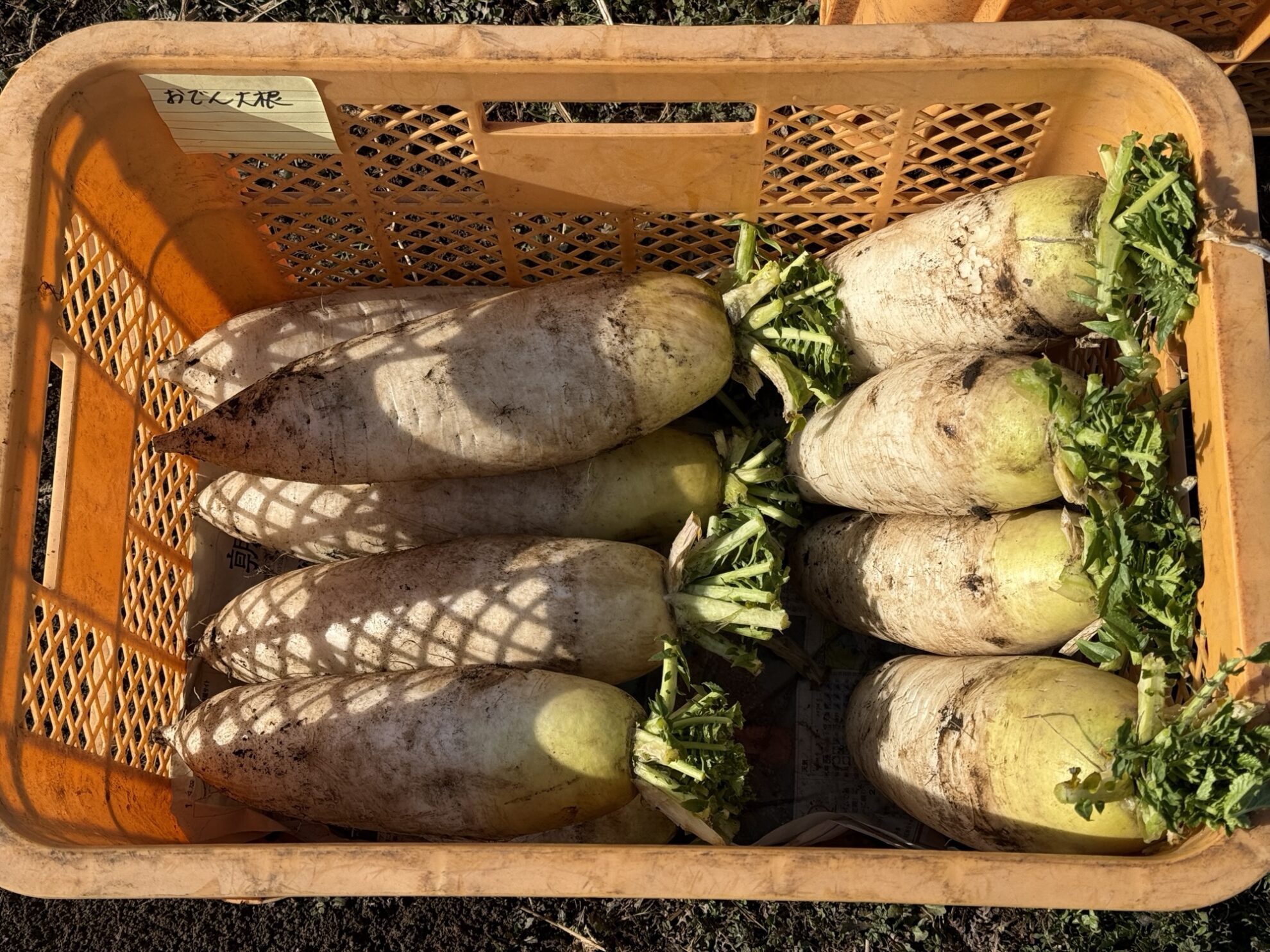 斉藤さんの中の畑で、おでん大根の収穫作業。
