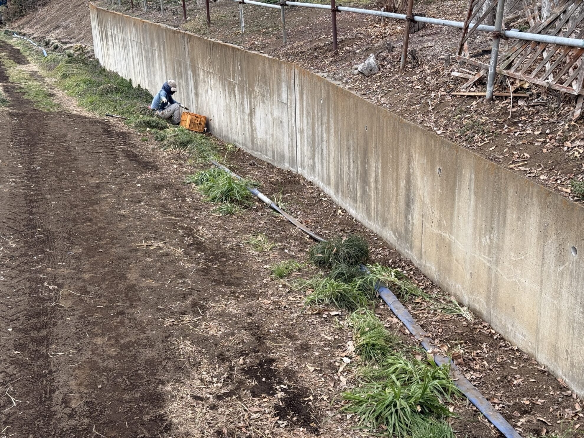斉藤さんの中の畑の脇の側溝で、落ち葉拾い作業。