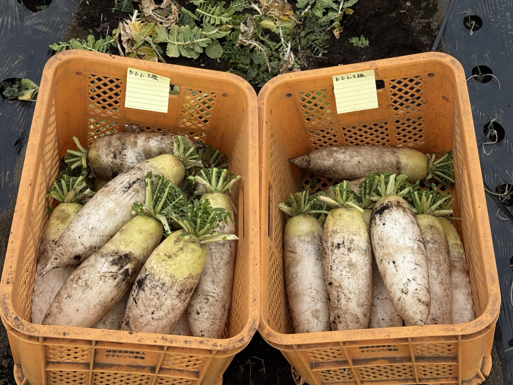 斉藤さんの中の畑で、おでん大根の収穫作業。