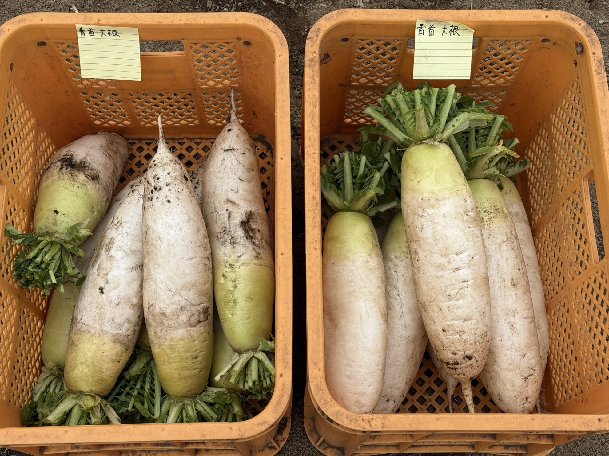 田中さんの上の畑で、強力大根(青首大根)の収穫作業。