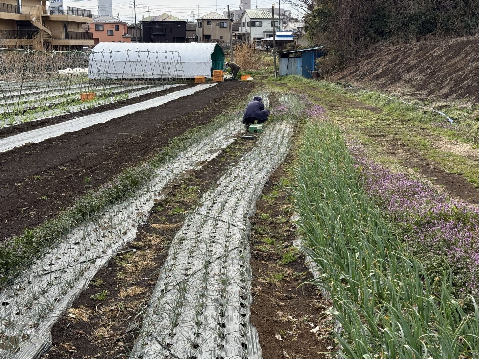 2026年2月27日(金)の作業記録 (玉ねぎの追肥作業、らっきょう・赤玉ねぎ周りの除草作業、絹さや・スナックエンドウの定植作業)