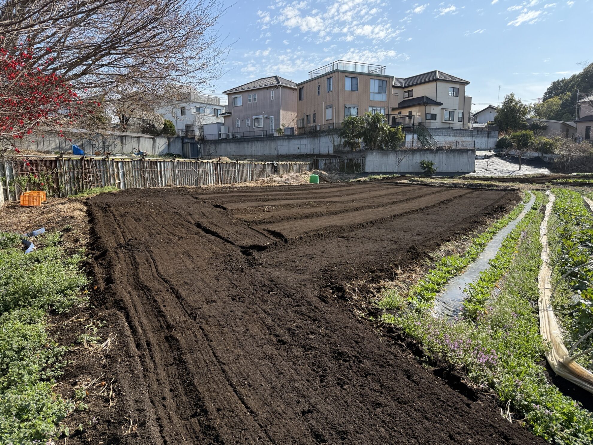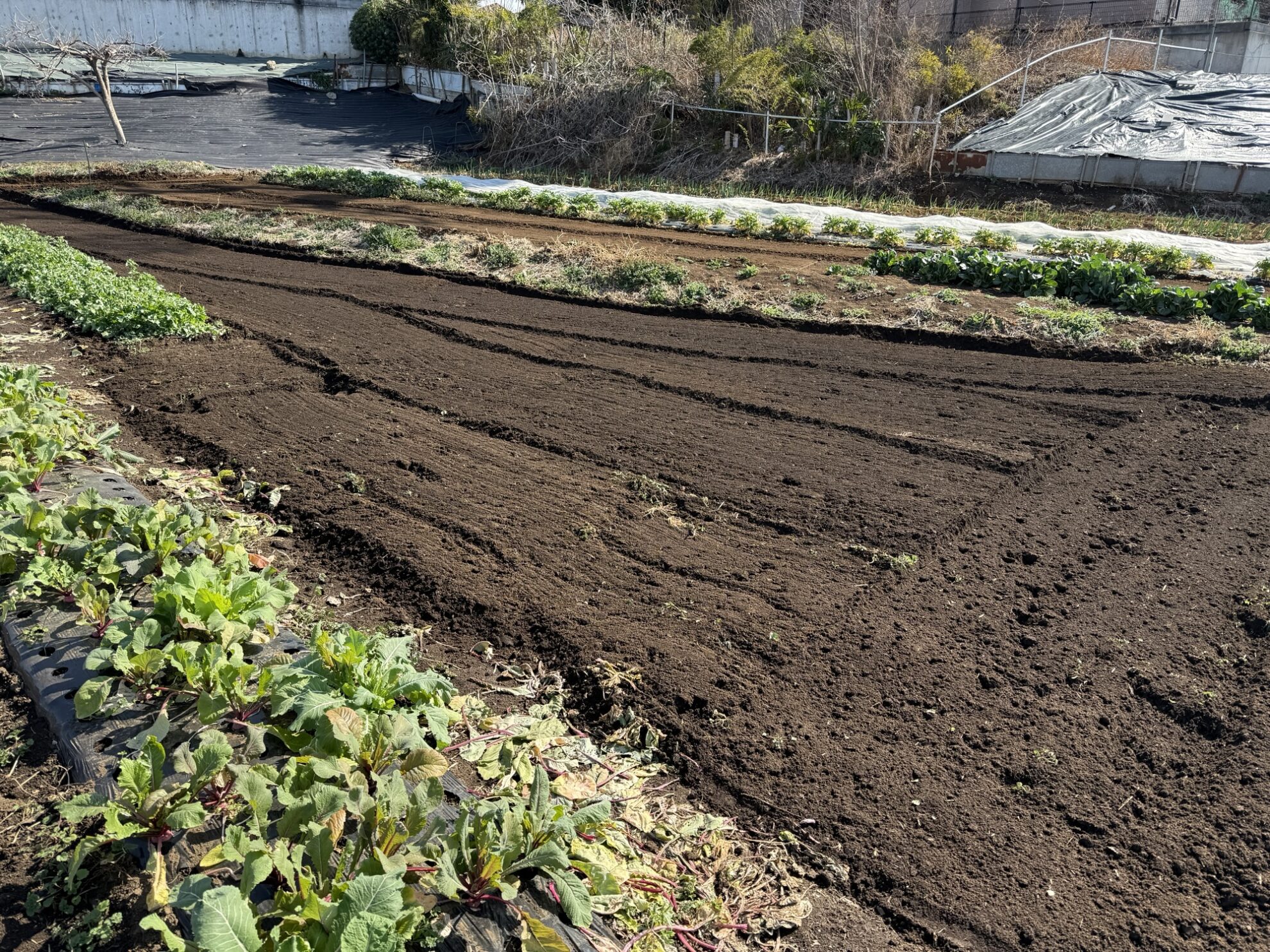 田中さんの下の畑の空きスペースをトラクターで耕耘作業。