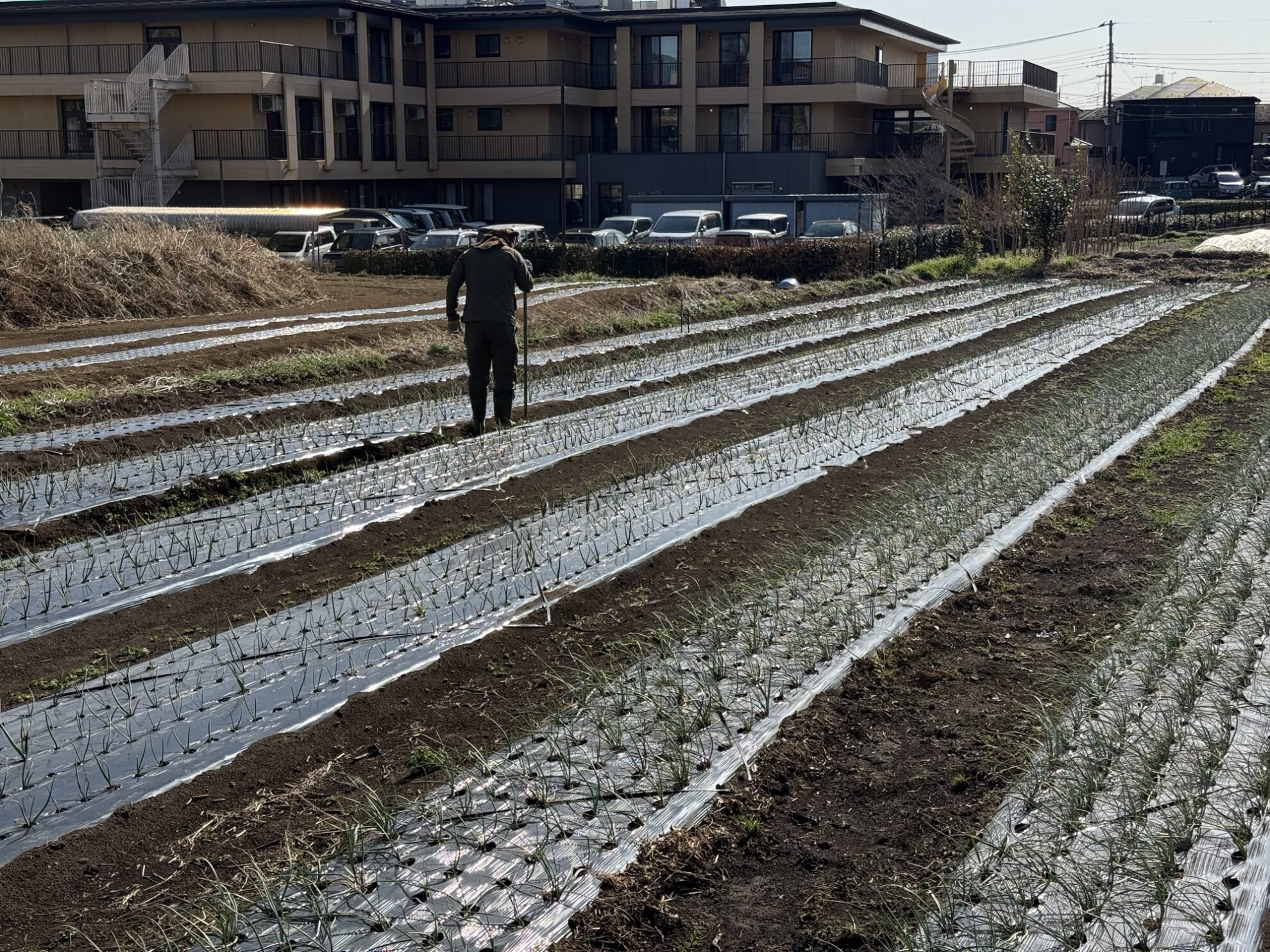 斉藤さんの下の畑で、玉ねぎ、らっきょうの畝間の除草作業。