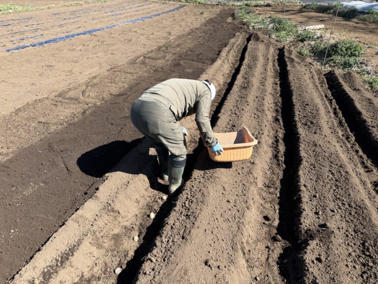 2026年3月14日(土)の作業記録 (ジャガイモの定植作業、春どり大根・二十日大根・ルッコラの播種作業)
