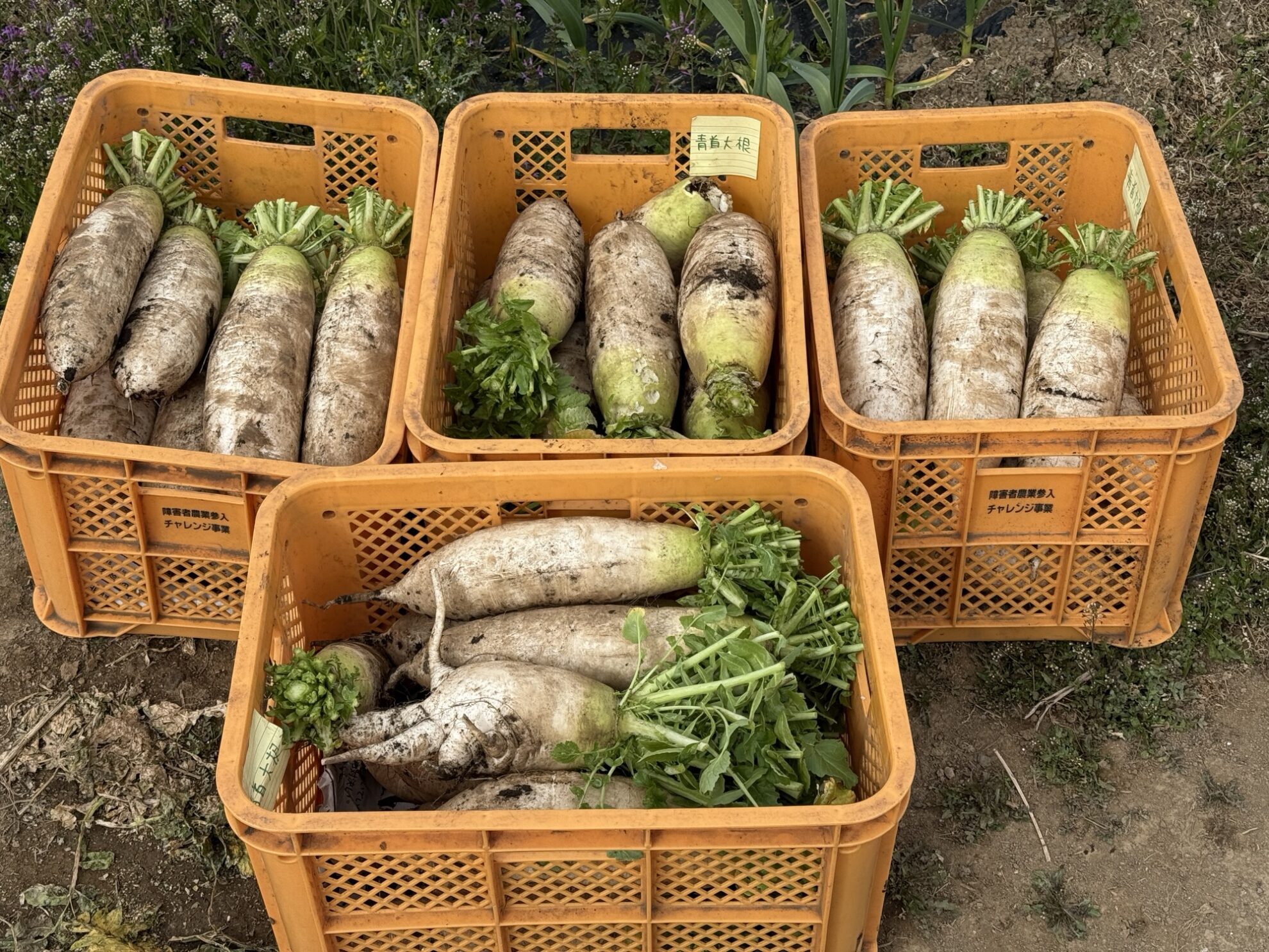 斉藤さんの中の畑で、強力大根(青首大根)の収穫作業。