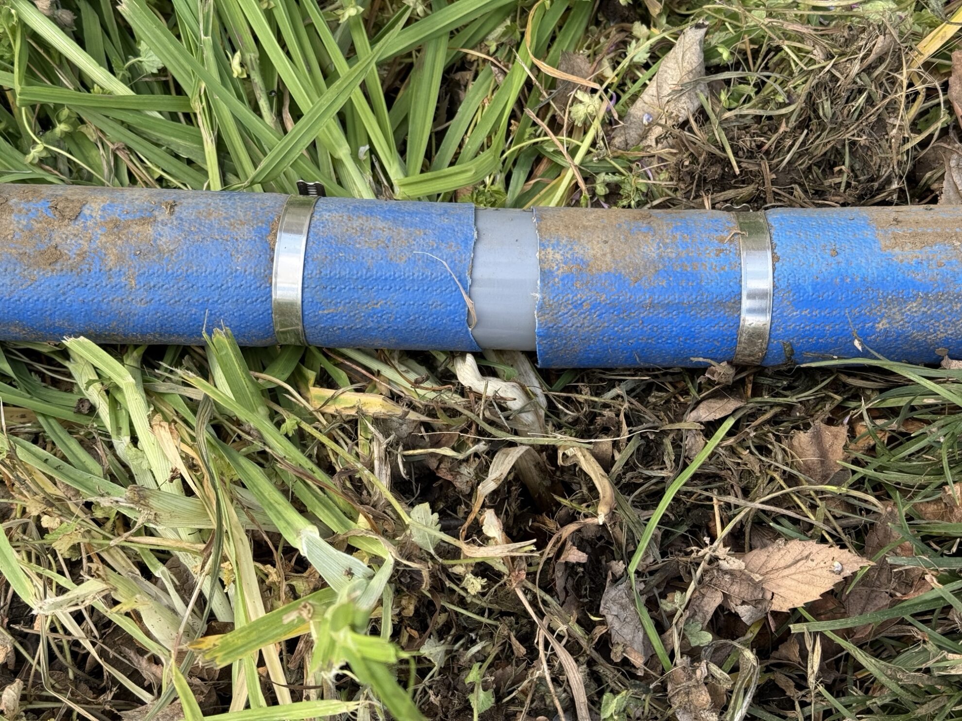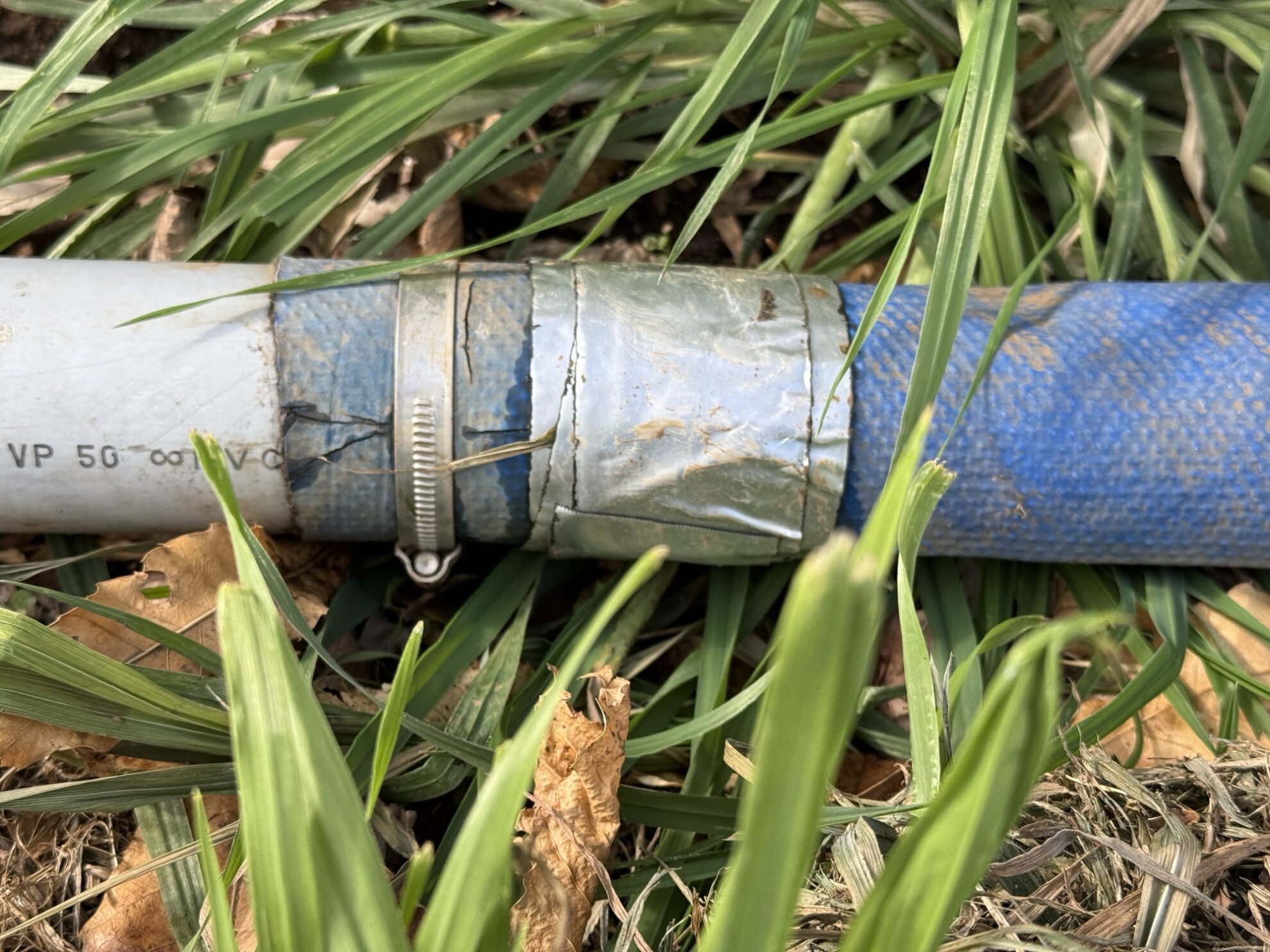 破損したホースをカットして間に塩ビ管を繋いで修繕しました。