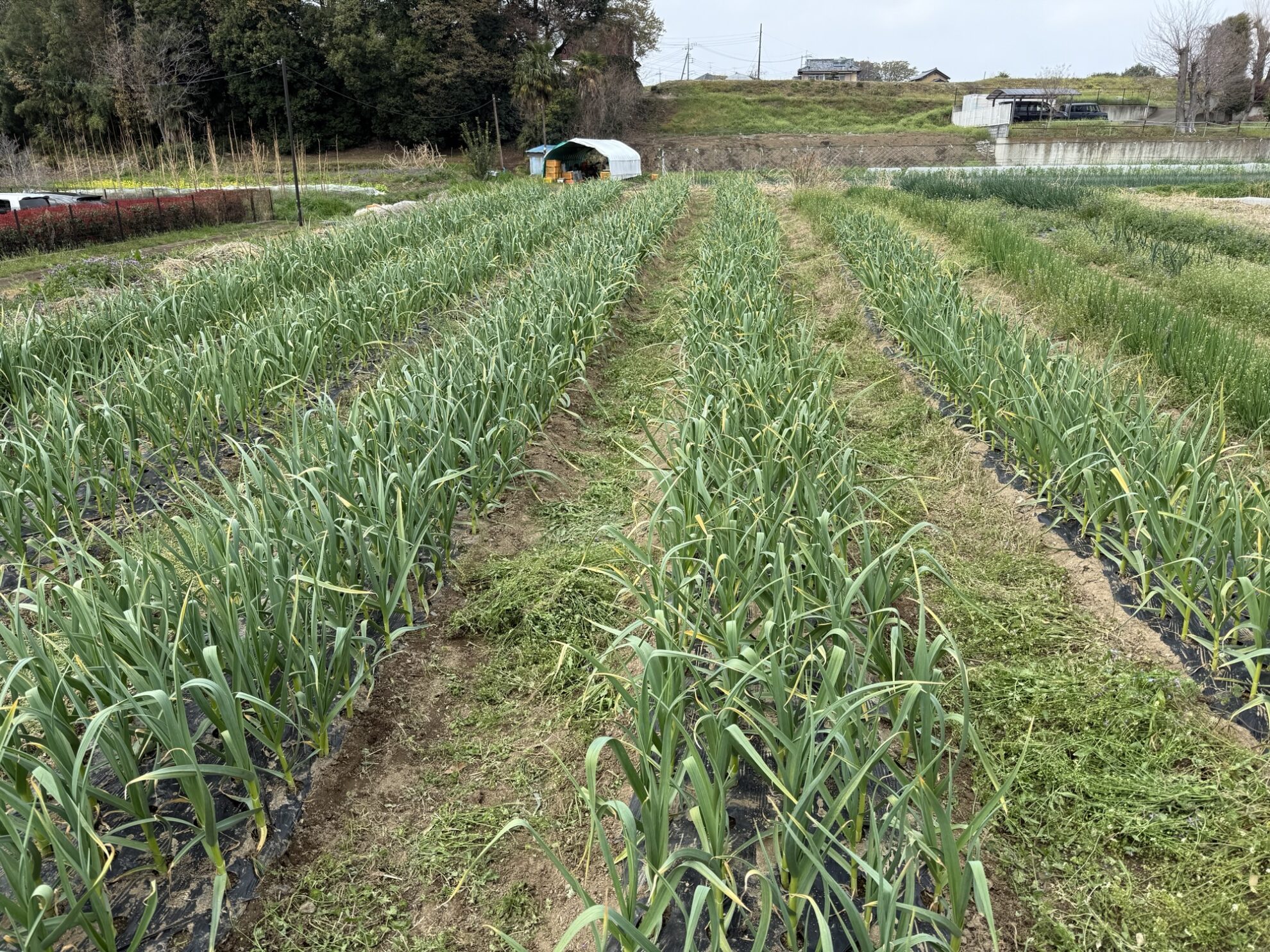 斉藤さんの下の畑で、エシャレットの収穫作業。
