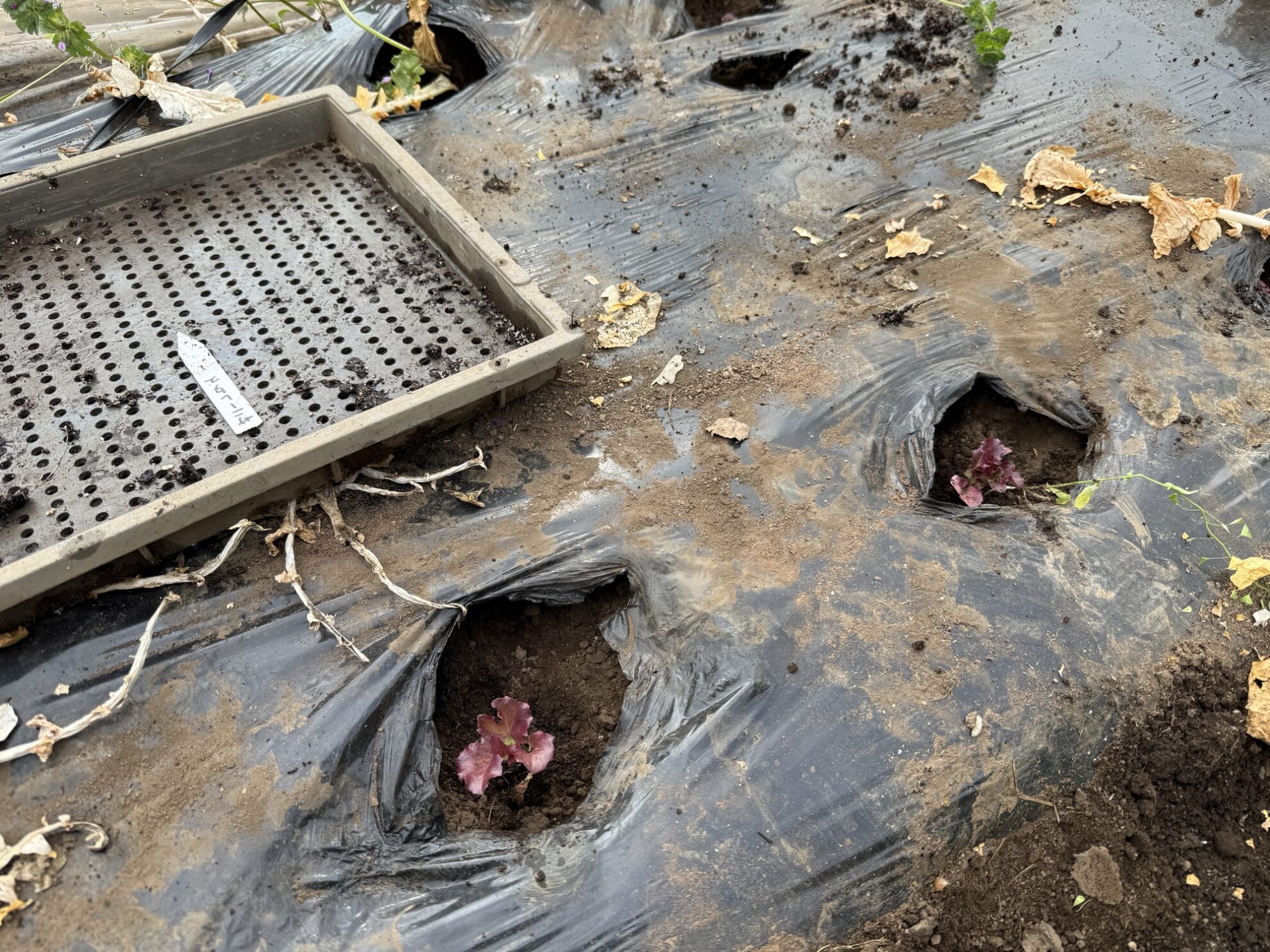 斉藤さんの上の畑で(大根跡地)、サニーレタスの定植作業。