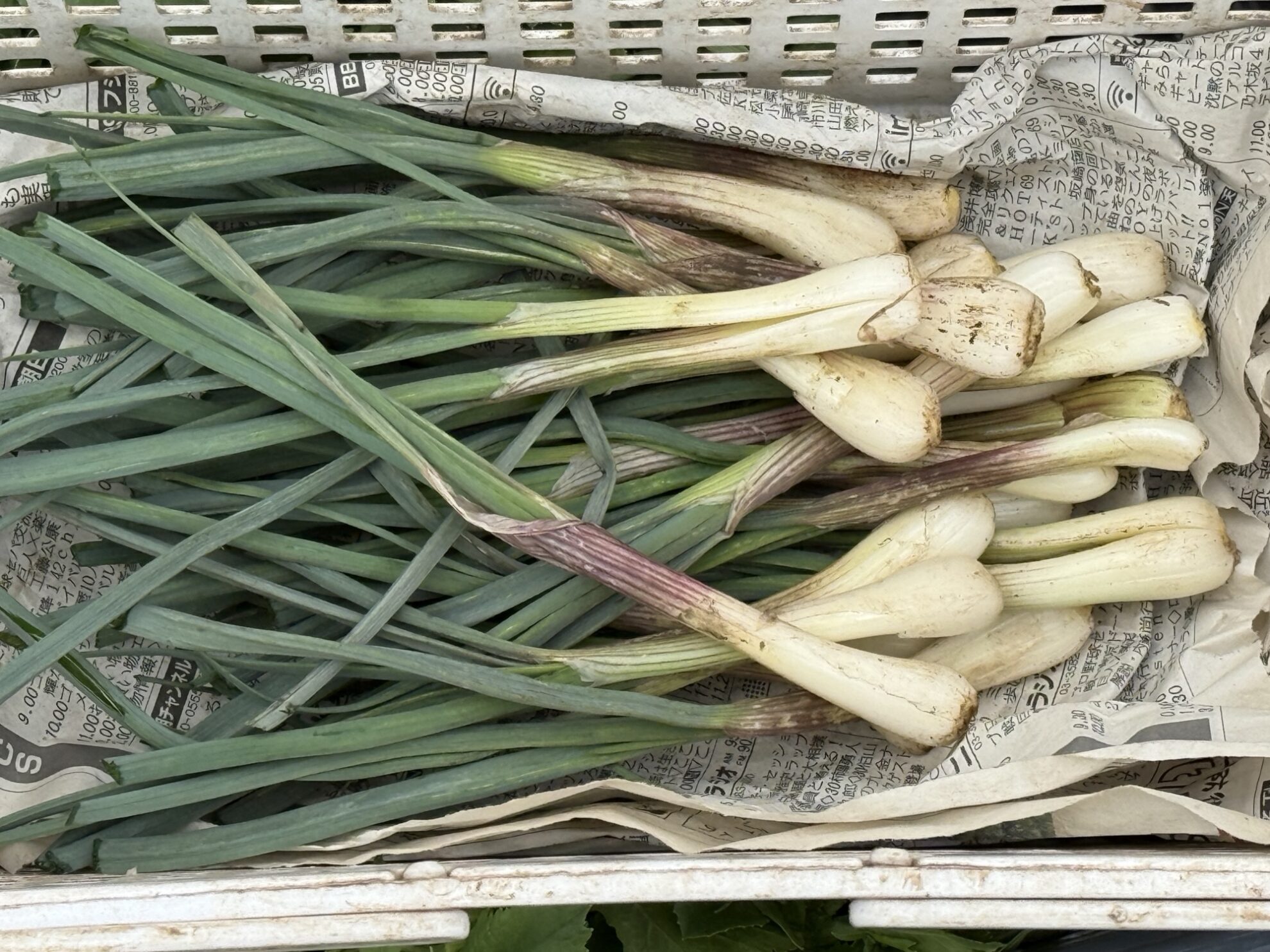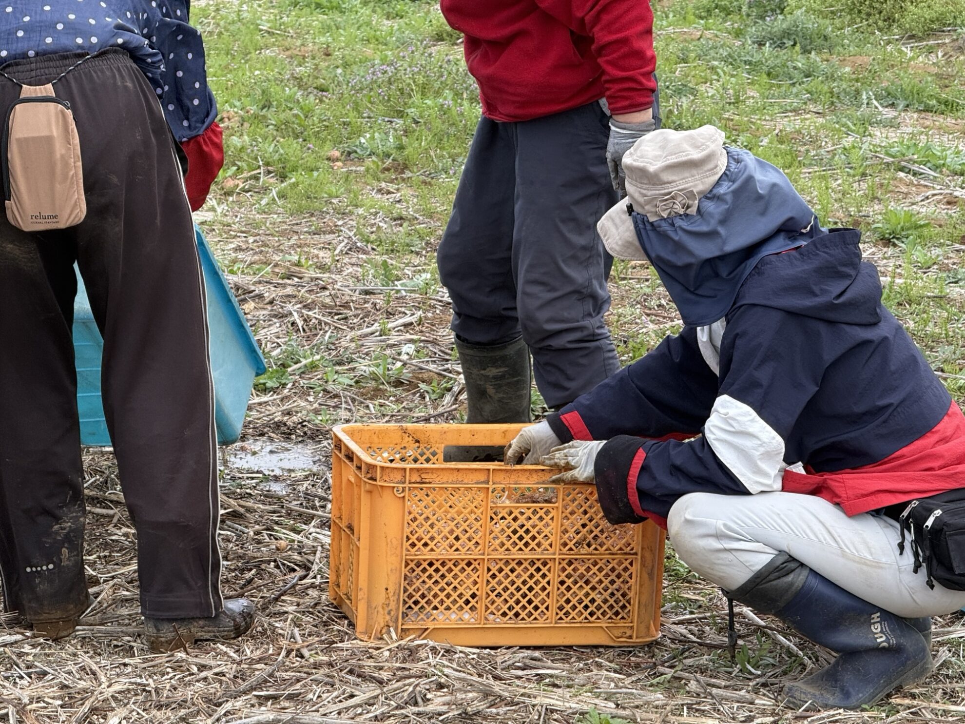 斉藤さんの下の畑で、エシャレットの収穫作業。