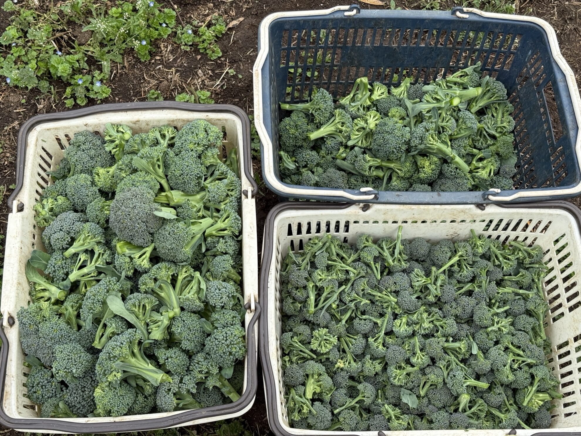 鈴木さん畑で、白菜の菜花、ブロッコリー、スティックブロッコリーの収穫作業。