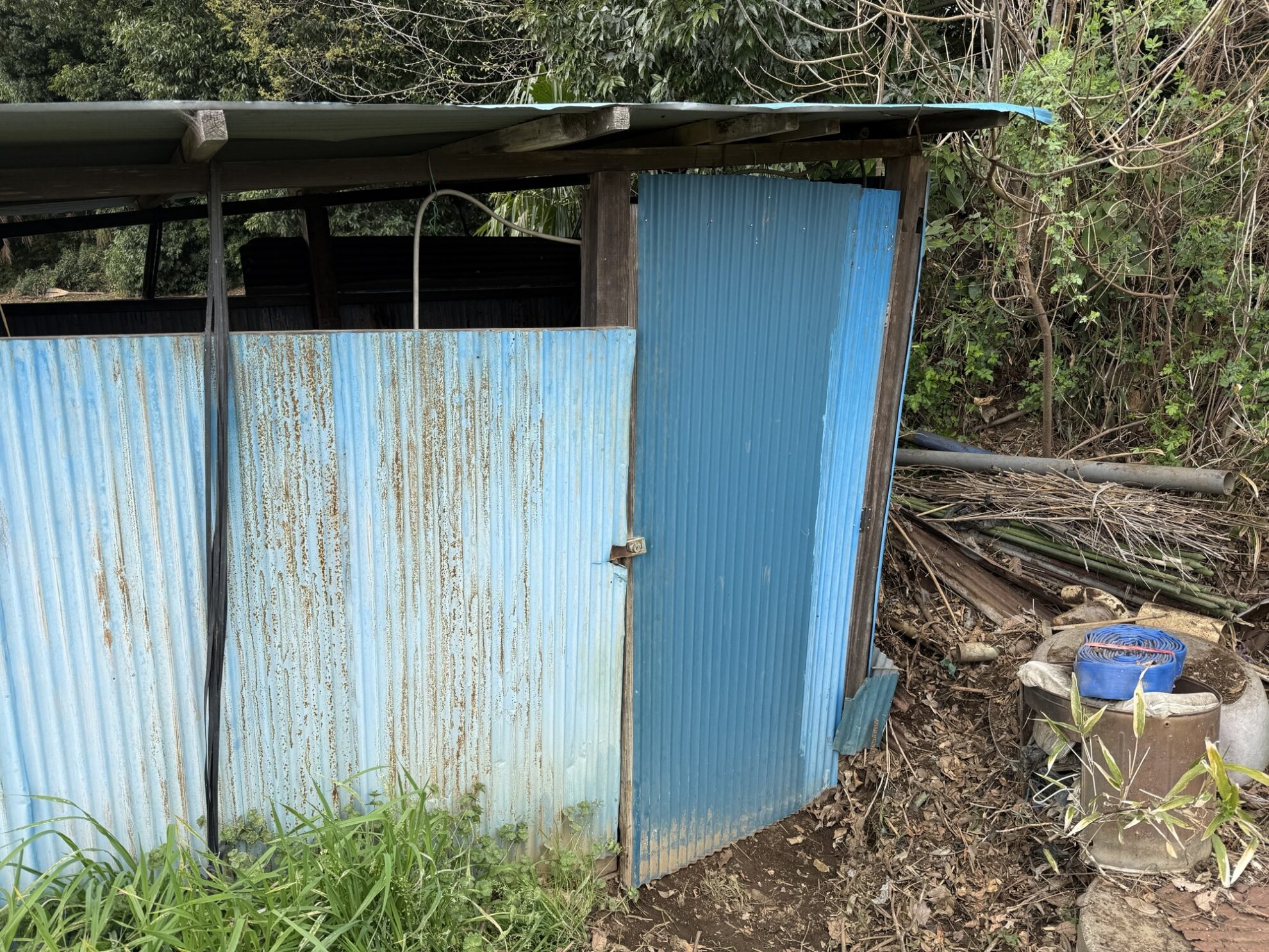 斉藤さんの下の畑で、井戸水のポンプ小屋の扉の波板が剥がれていたので、波板をネジで固定しました。