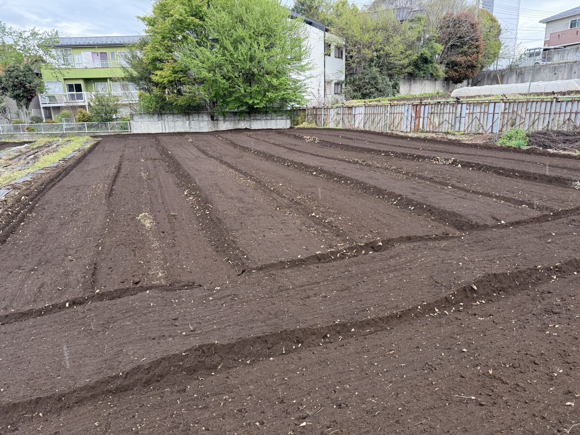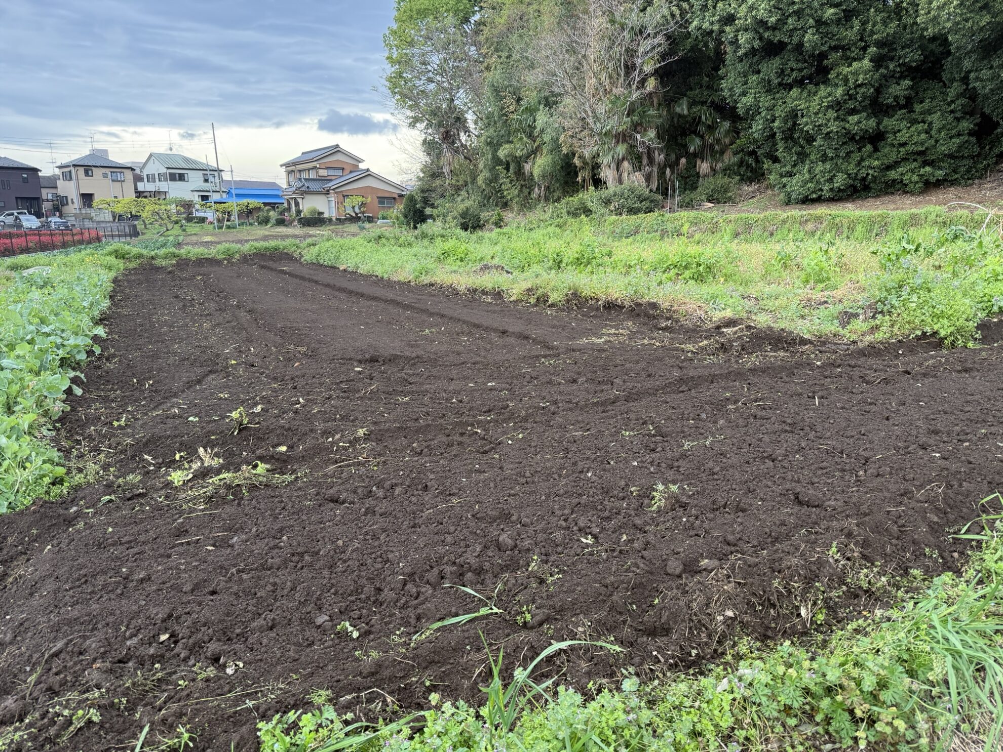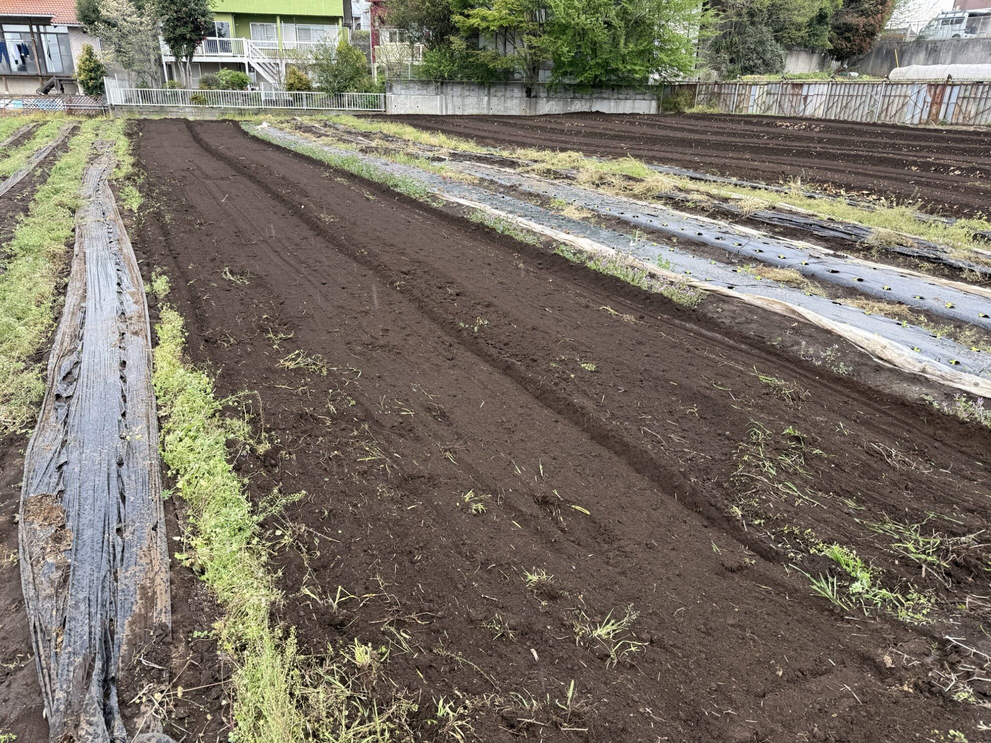 2026年4月10日(金)の作業記録 (斉藤さん畑をトラクターで耕耘作業、大根類のマルチ剥がし作業、キュウリ・インゲン、成平インゲンの播種作業)