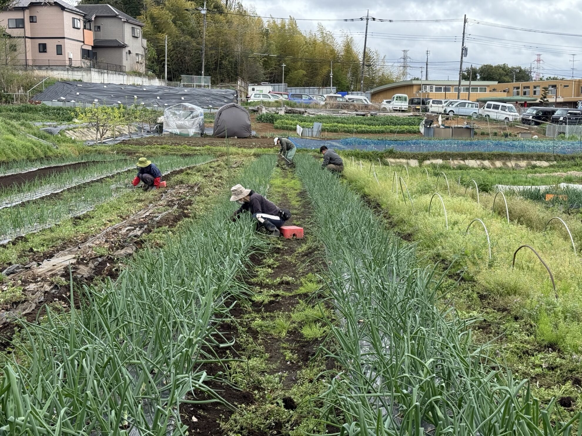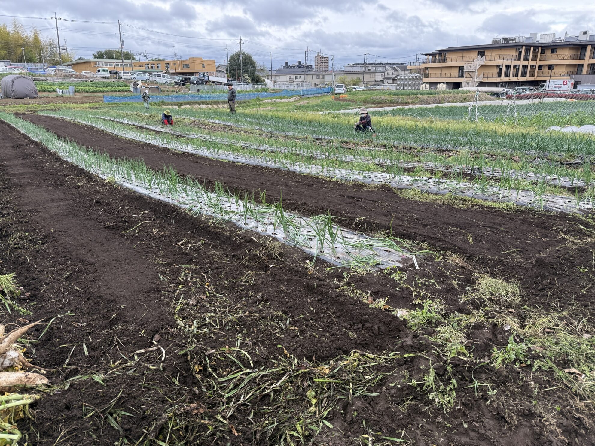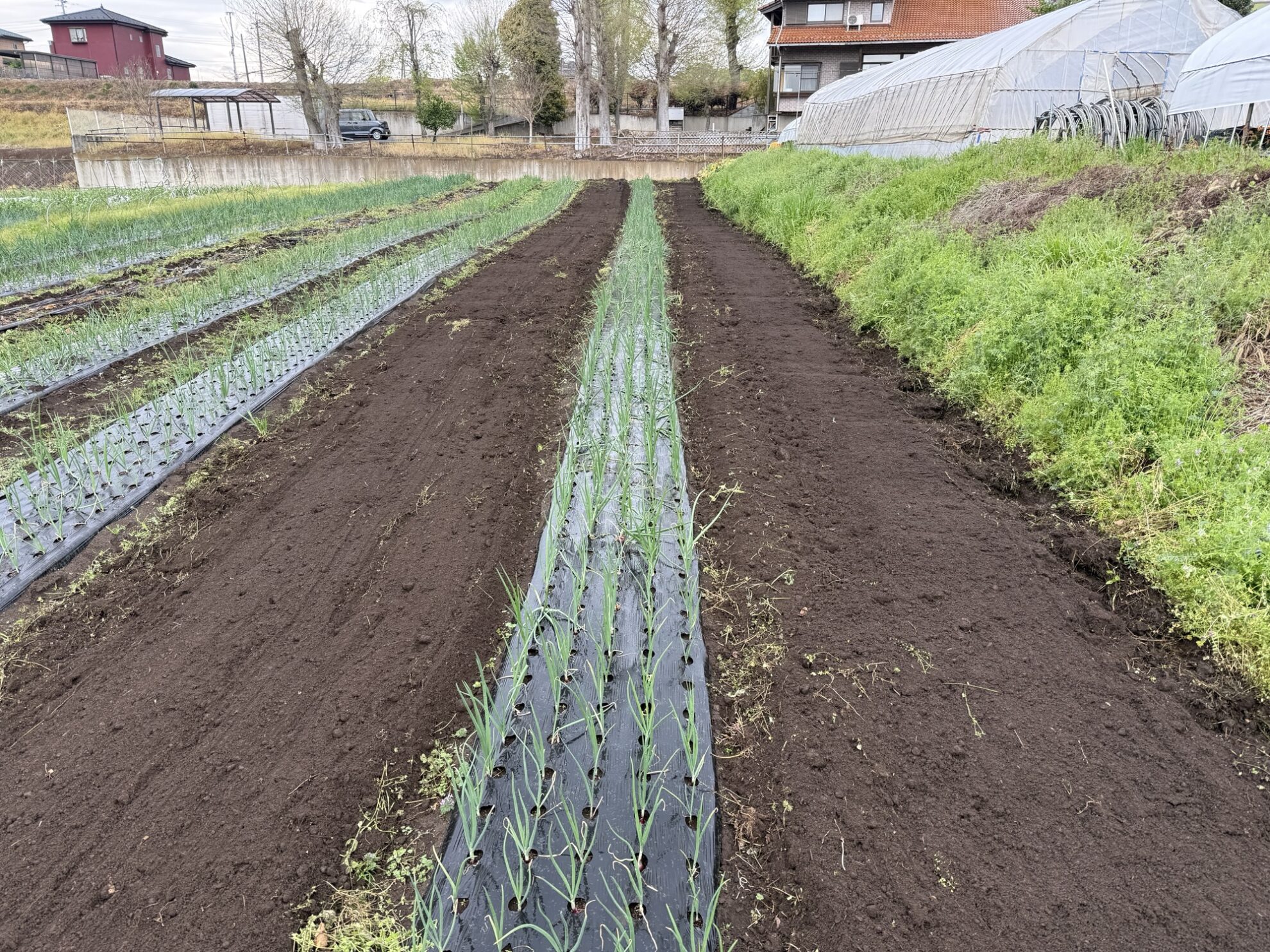 斉藤さんの下の畑で、赤玉ねぎ周りの除草作業。