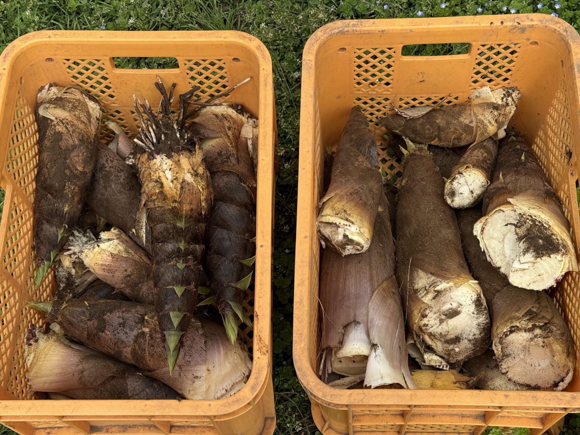 鈴木さんと斉藤さんの竹林で竹の子の収穫作業。