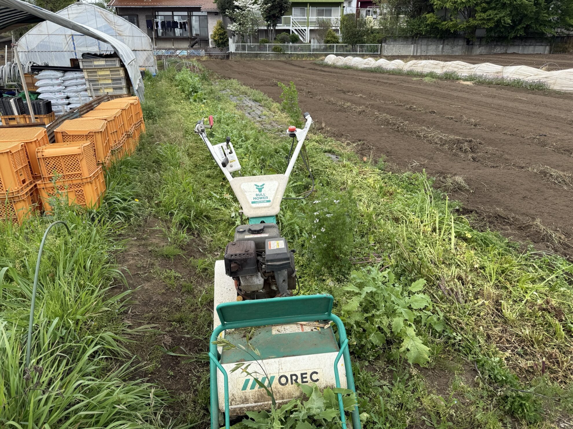 マルチを剥がした後に、ビーツ、パクチー、黄かぶ(味こがね)の跡地をトラクターで耕耘作業。