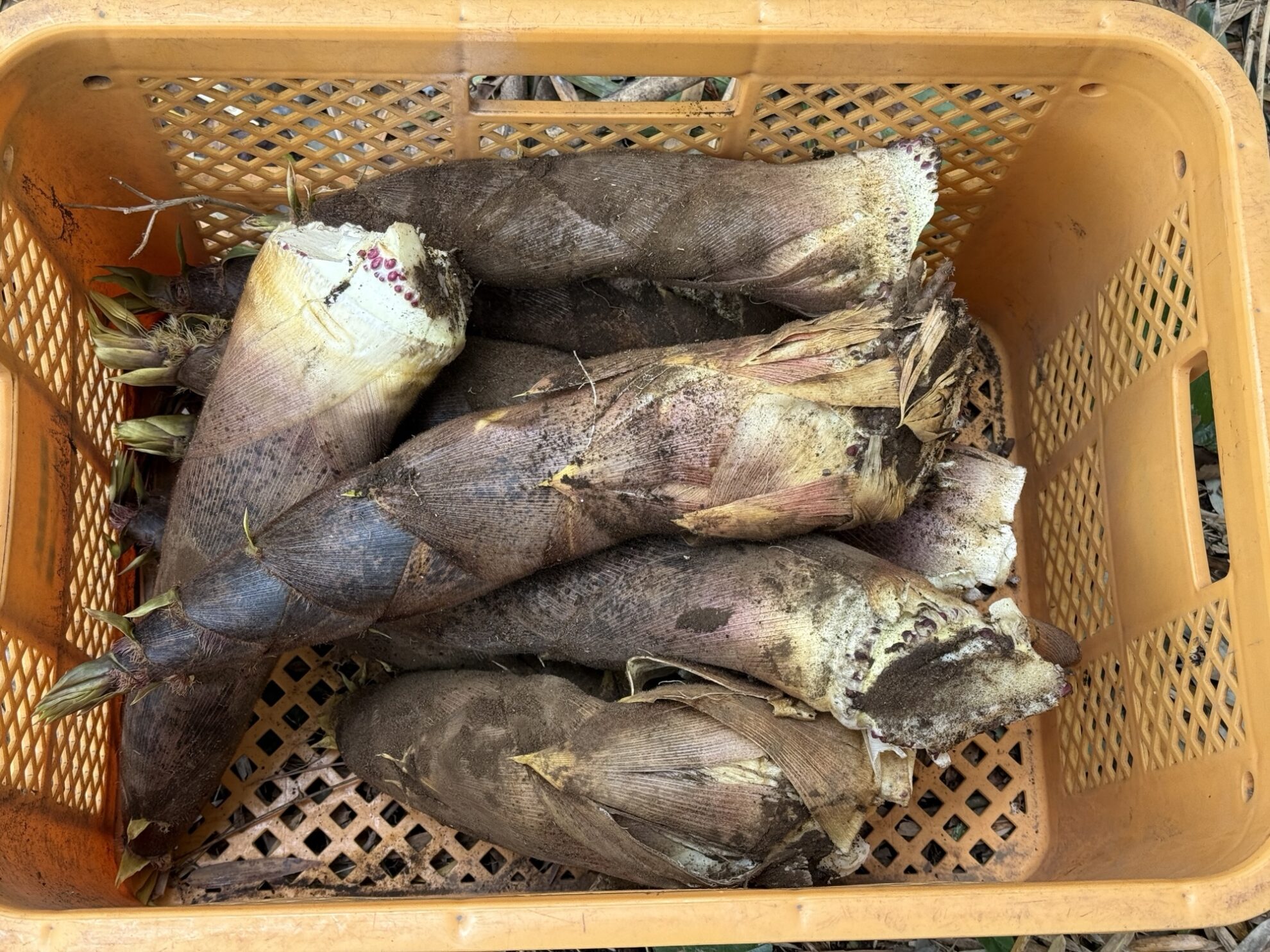 鈴木さんと斉藤さん畑の竹林で、竹の子の収穫作業。